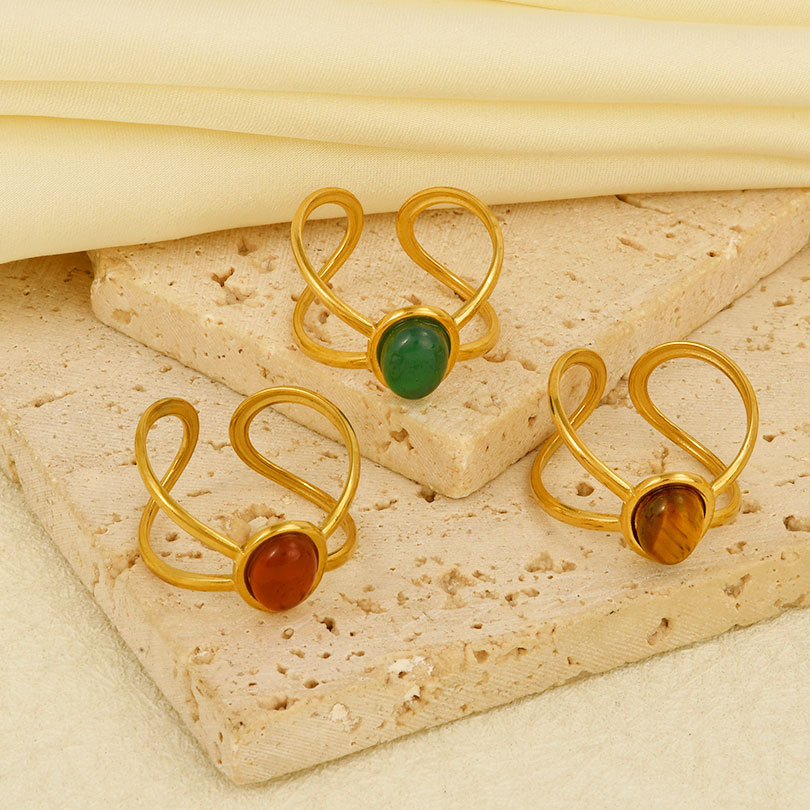 Jalokivi sormen sormus, 304 Stainless Steel, kanssa Jalokivi, kullan väri kullattu, naiselle, enemmän värejä valinta, Myymät PC