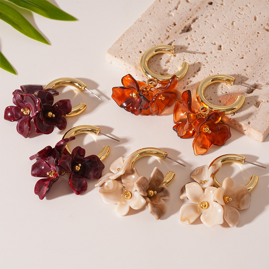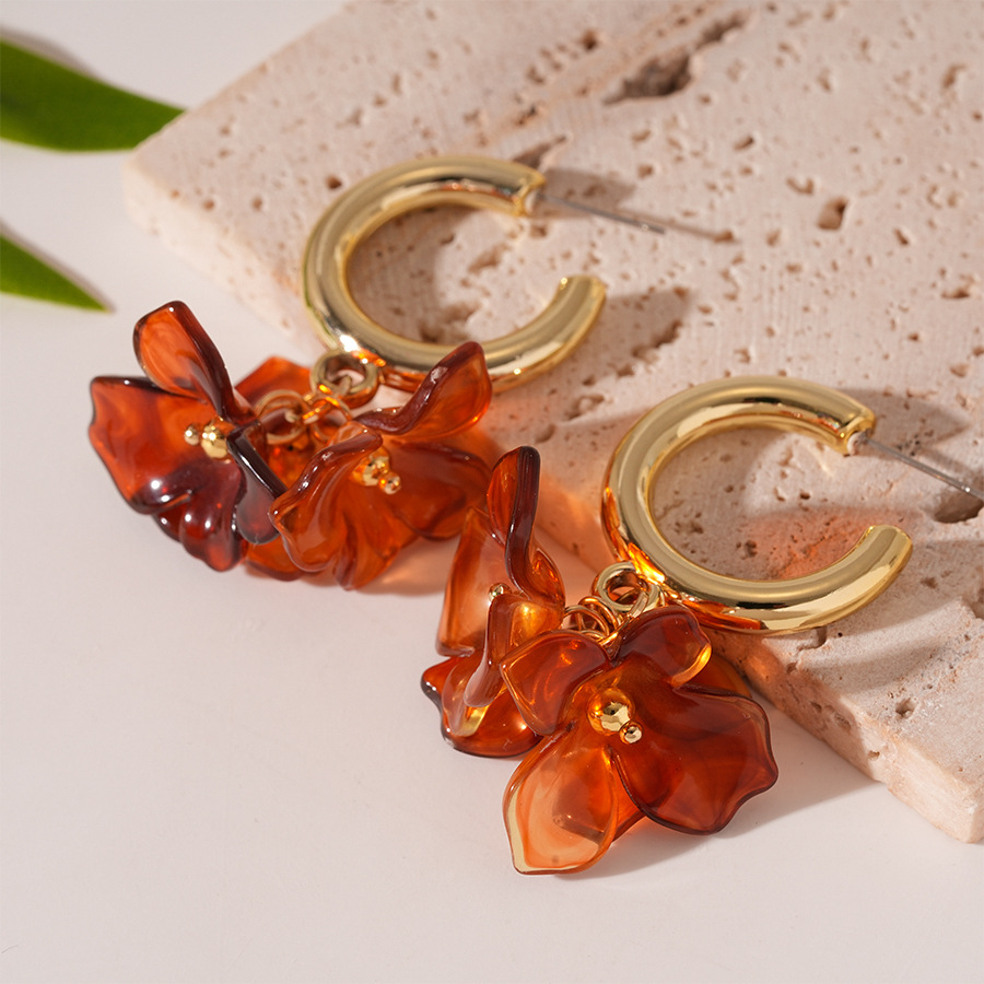 1:Silver needle-light brown petal c-shaped stud earrings2:Silver needle-orange petal c-shaped stud earrings3:Silver needle-purple petal c-shaped stud earrings