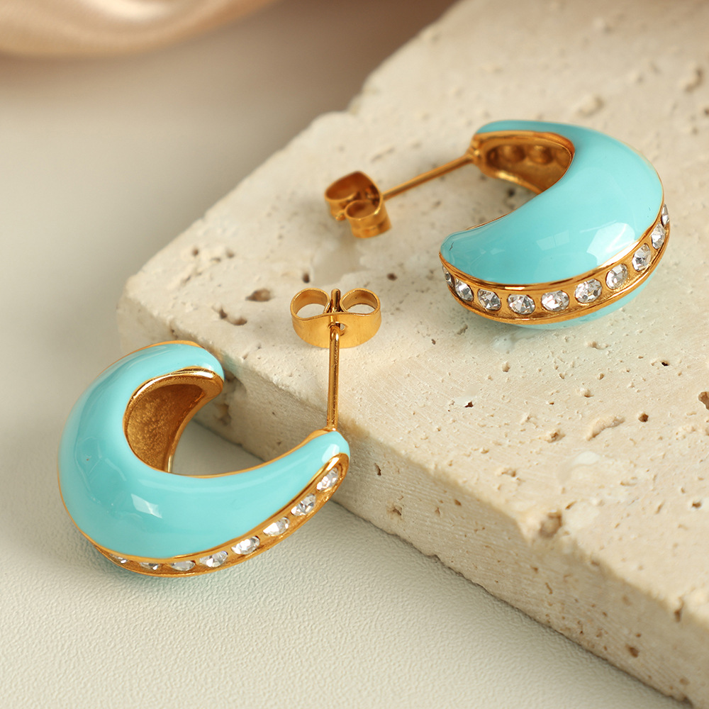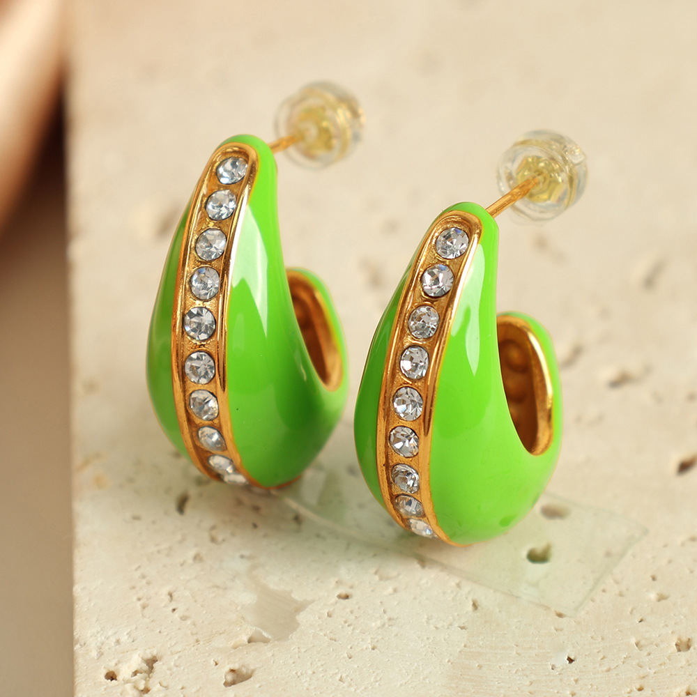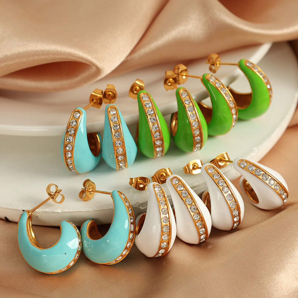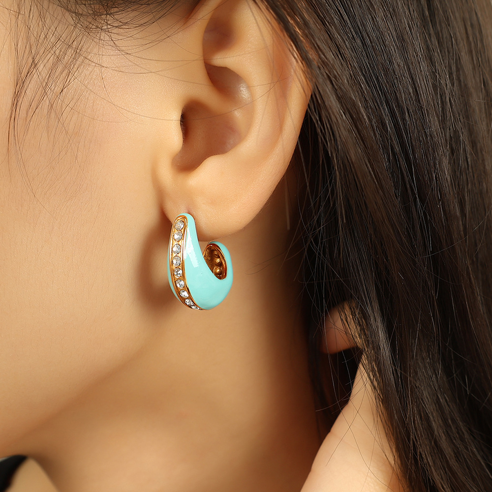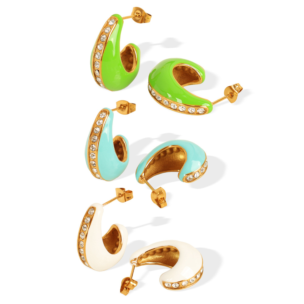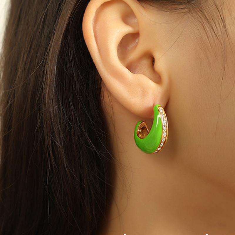 1:Eh734 white oil drop gold earrings2:Eh734 green oil drop gold earrings3:Eh734 light blue oil drop gold earrings