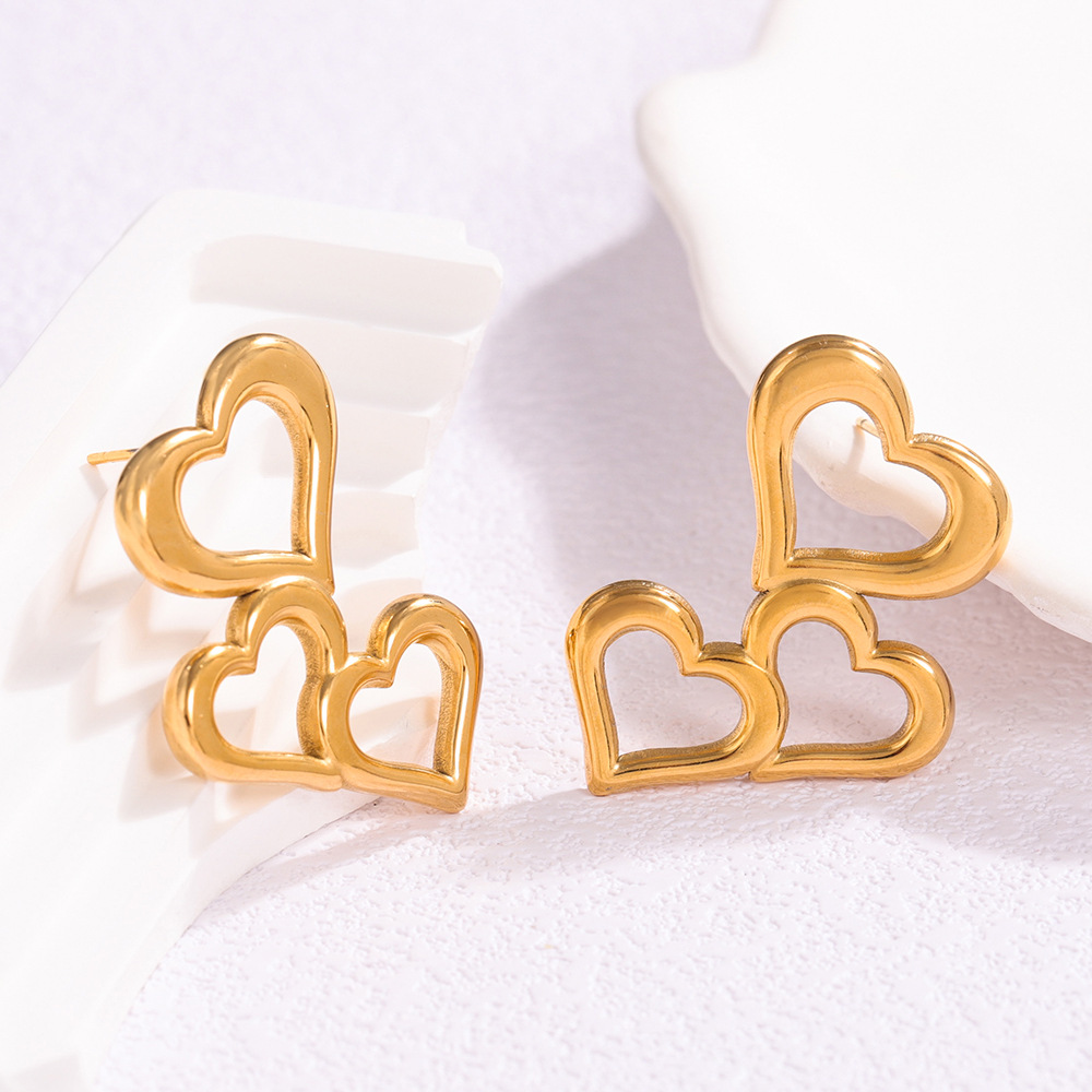 304 Stainless Steel Stud Korvakorut Set, kullan väri kullattu, kolme kappaletta & eri tyylejä valinta & naiselle & emali, Myymät set
