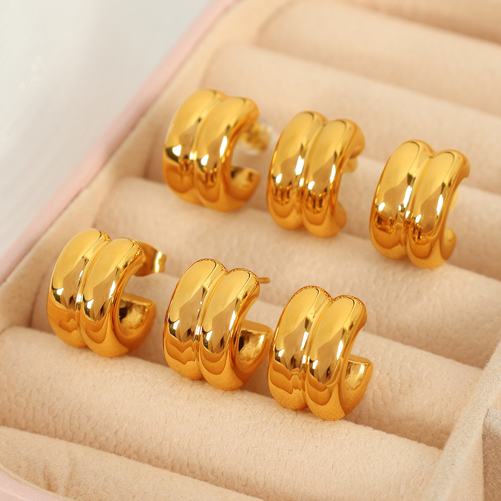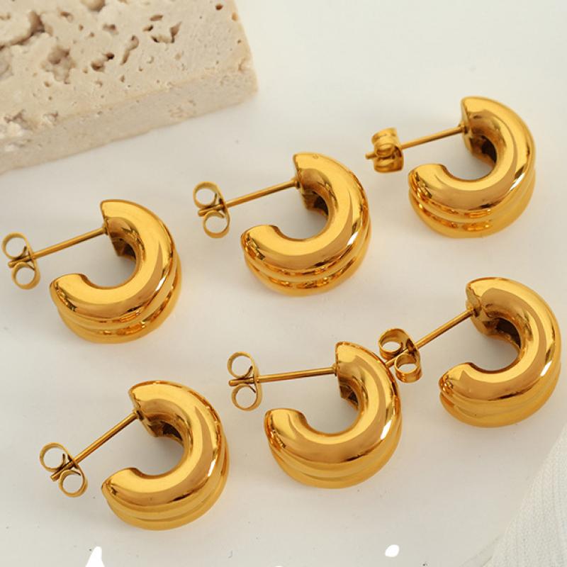 304 Stainless Steel Stud Korvakorut, kullan väri kullattu, eri tyylejä valinta & naiselle, Myymät Pair