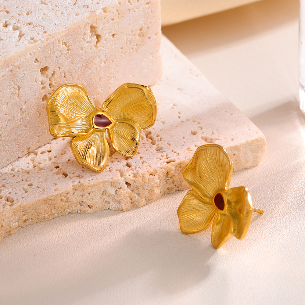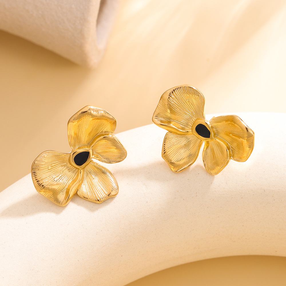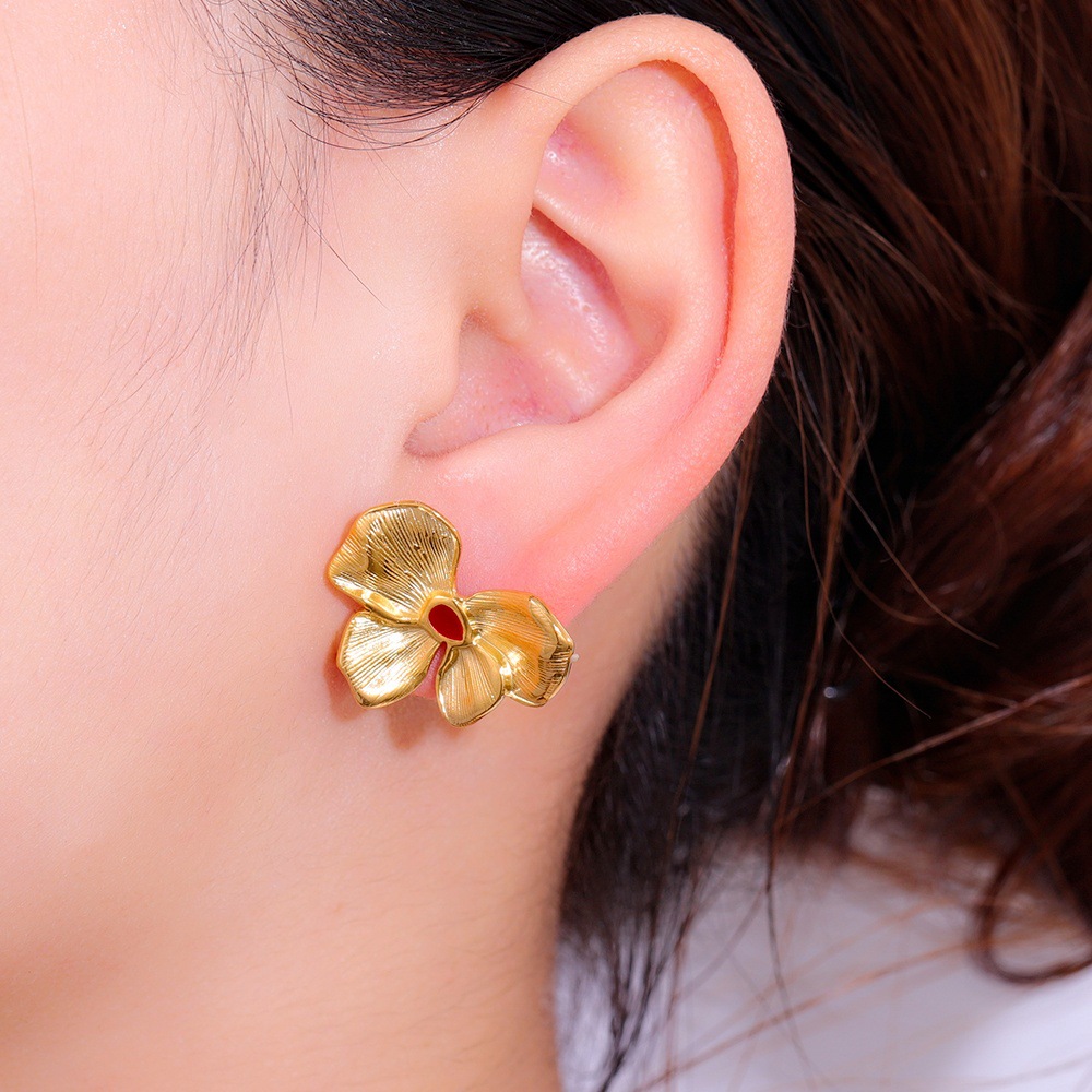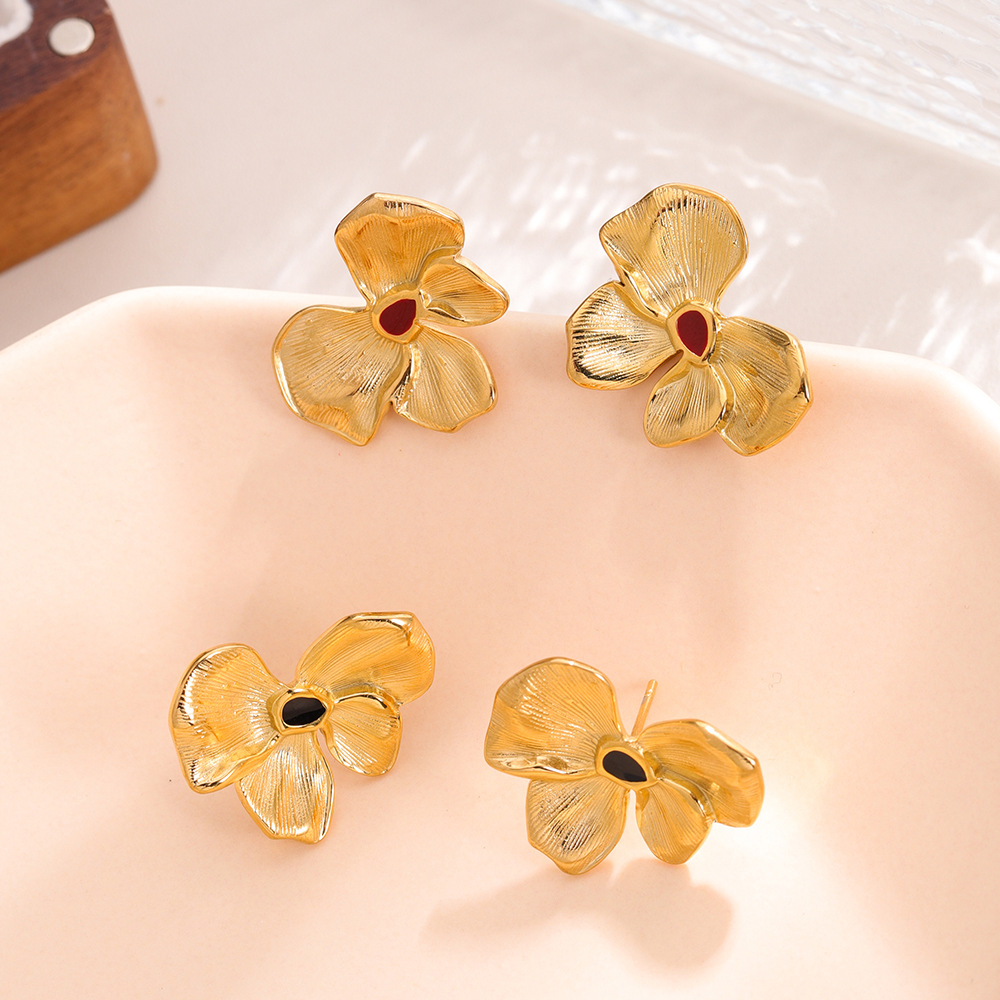 Ruostumaton teräs Korvakorut, 304 Stainless Steel, Kukka, kullan väri kullattu, muoti korut & naiselle & emali, enemmän värejä valinta, Myymät Pair