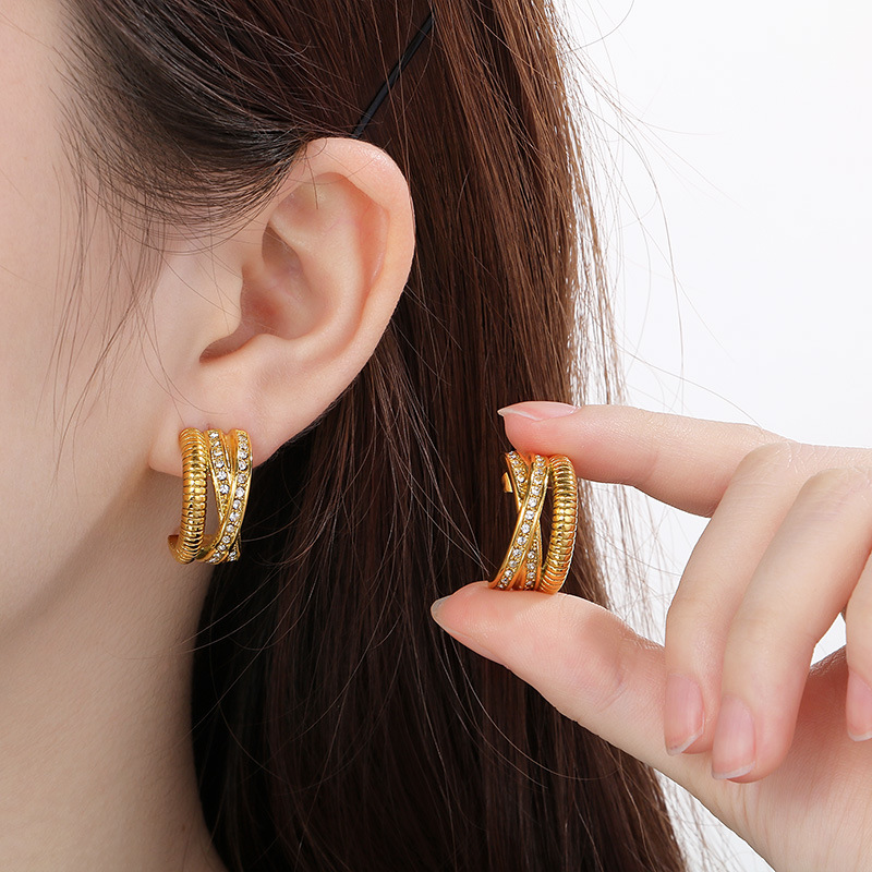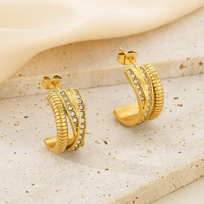 304 Stainless Steel Stud Korvakorut, kullan väri kullattu, eri tyylejä valinta & naiselle, Myymät Pair