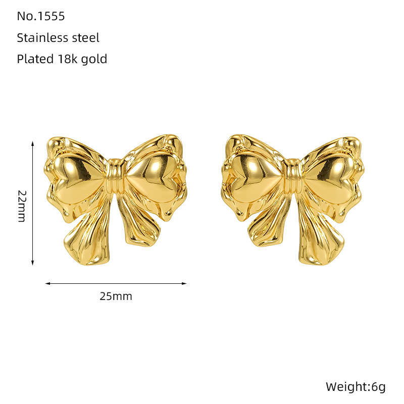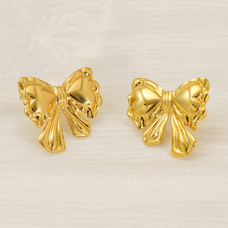 Ruostumaton teräs Korvakorut, 304 Stainless Steel, Bowknot, 18K kullattu, muoti korut & naiselle, Myymät Pair