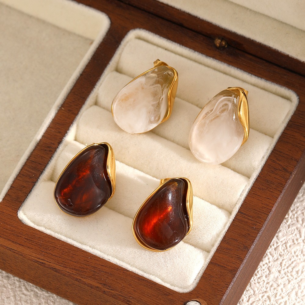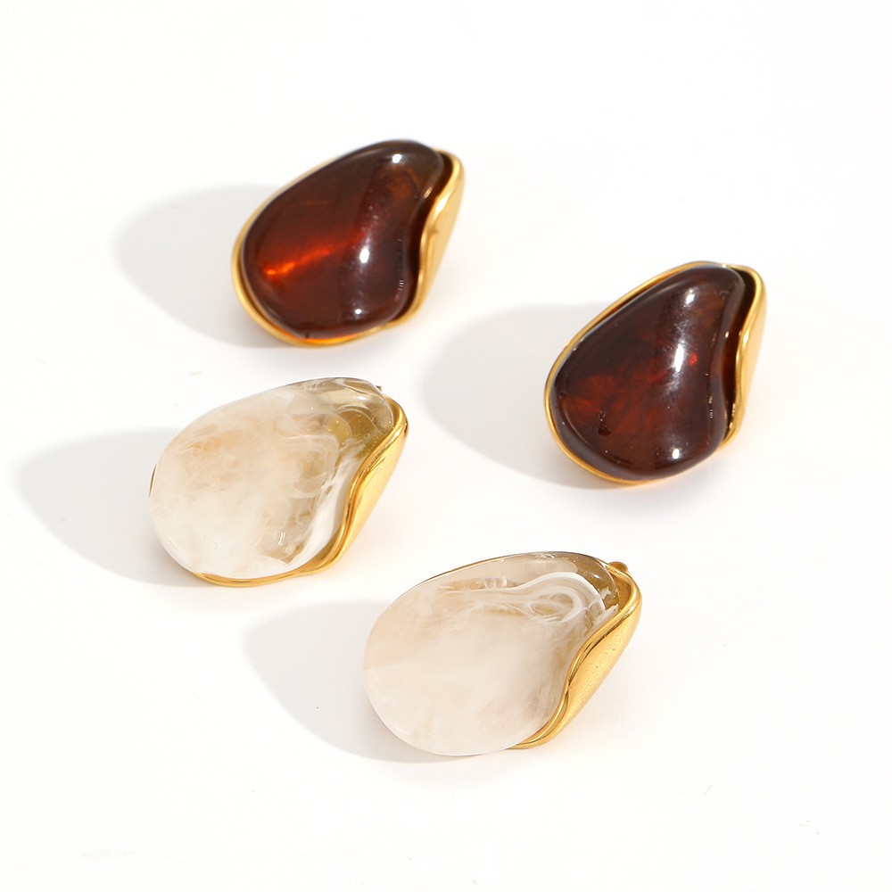 Resin Korvakorut, 304 Stainless Steel, kanssa Hartsi, 18K kullattu, muoti korut & naiselle, enemmän värejä valinta, Myymät Pair