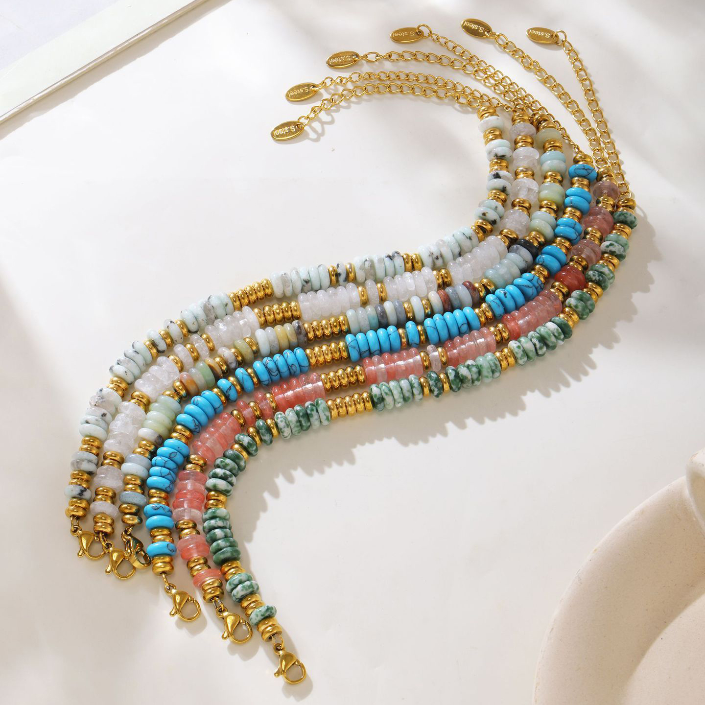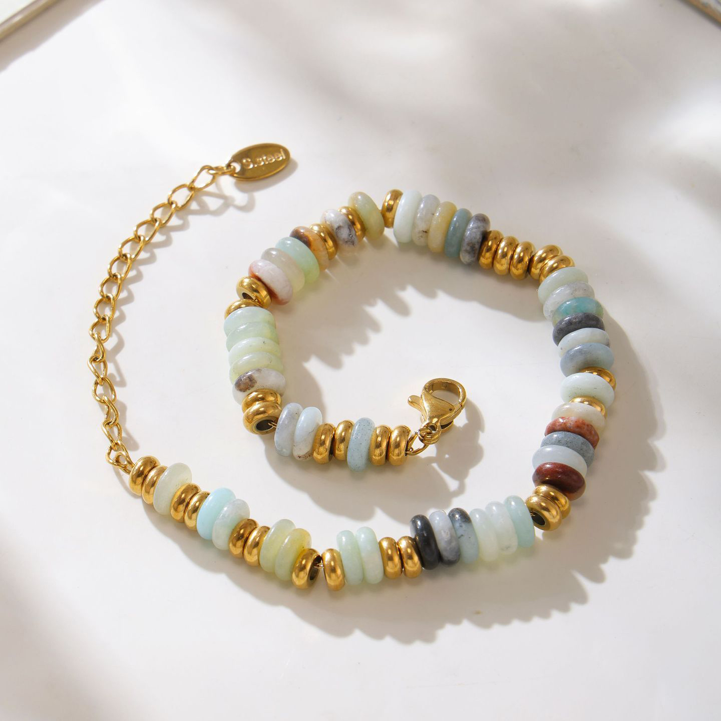Jalokivi rannekorut, 304 Stainless Steel, kanssa Luonnonkivi, kullan väri kullattu, muoti korut & naiselle, enemmän värejä valinta, Myymät PC