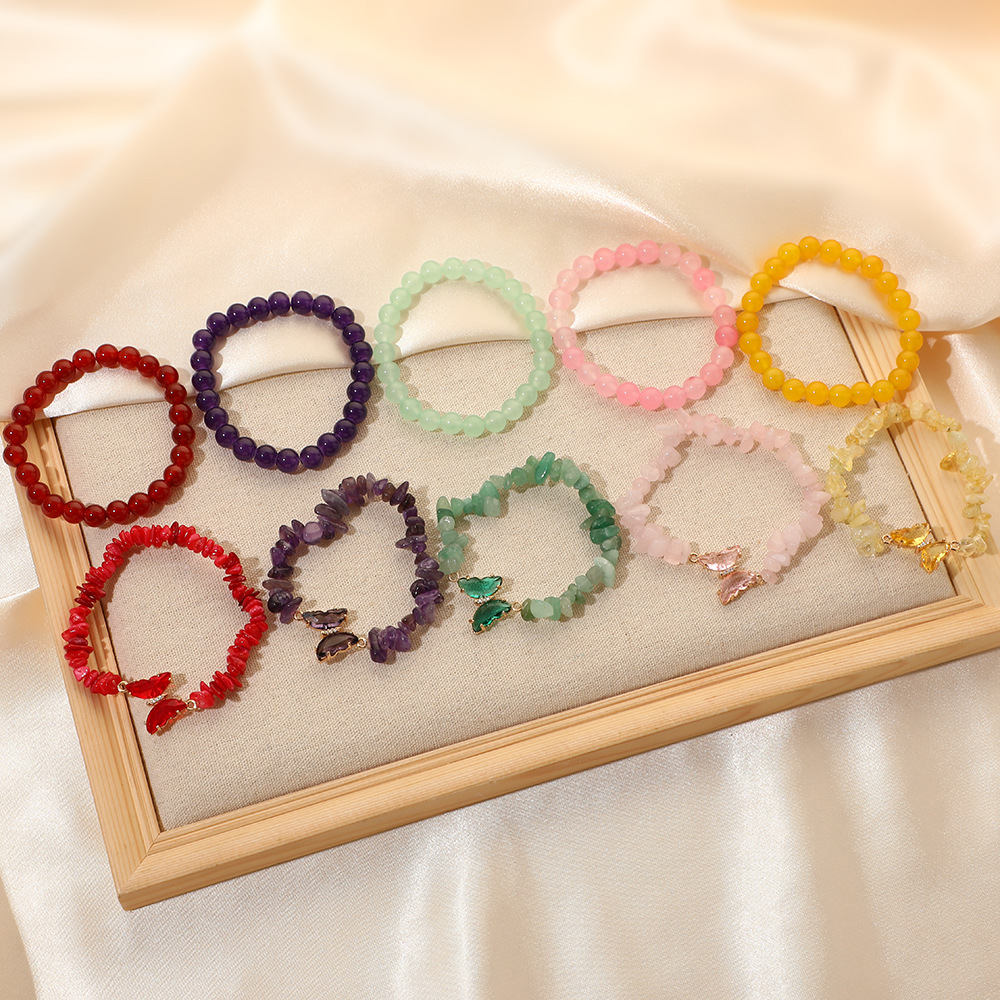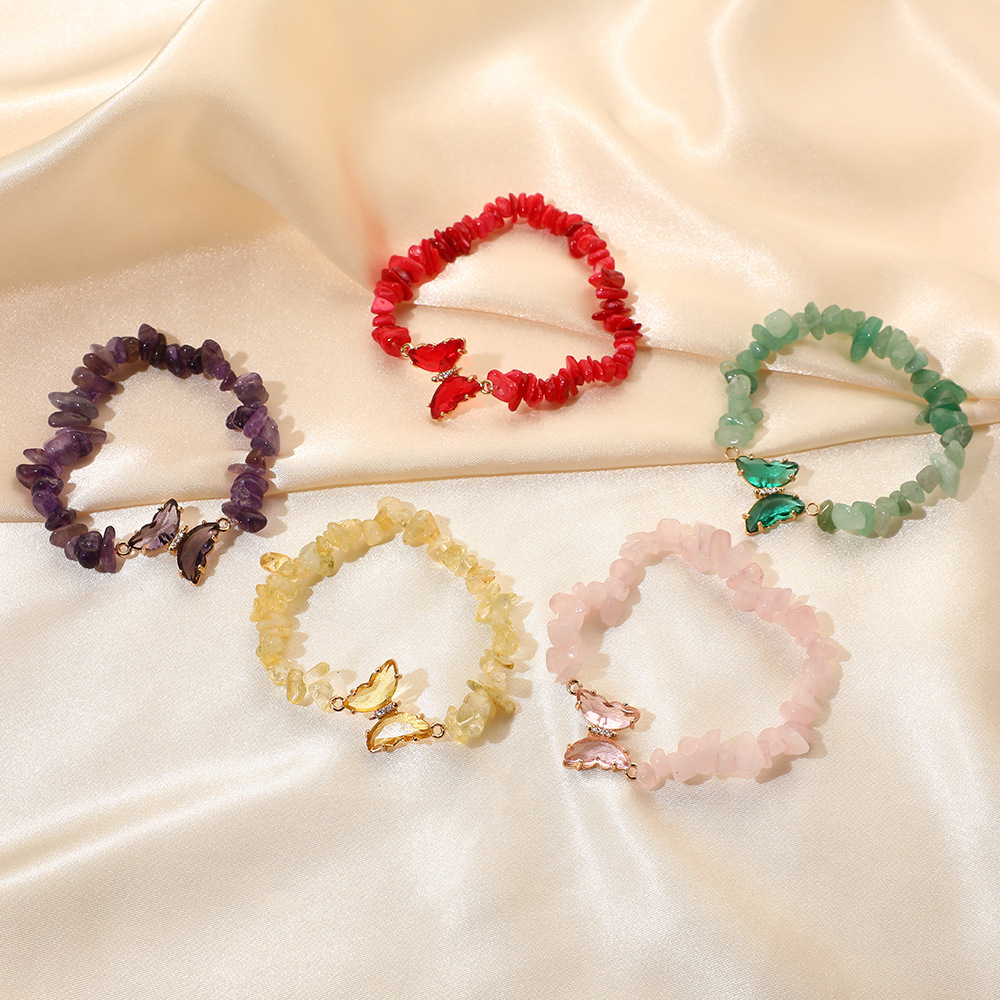 1:Red agate + gravel red coral2:Amethyst (glass) + gravel amethyst3:Green aventurine4:Yellow agate + gravel citrine5:Rose quartz