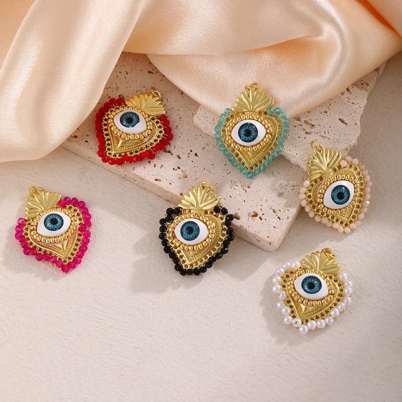 Brass Korut Riipukset, Messinki, kanssa Kristalli & Muovi Pearl, Sydän, kullan väri kullattu, silmän kuvio & tee-se-itse, enemmän värejä valinta, Myymät PC