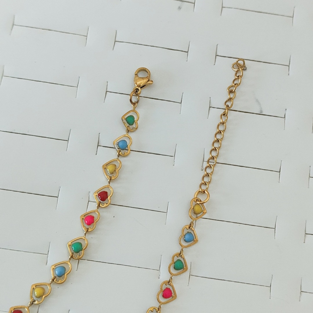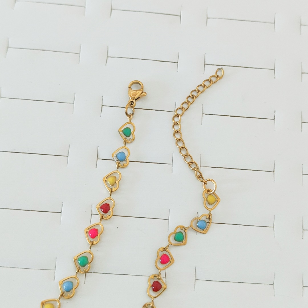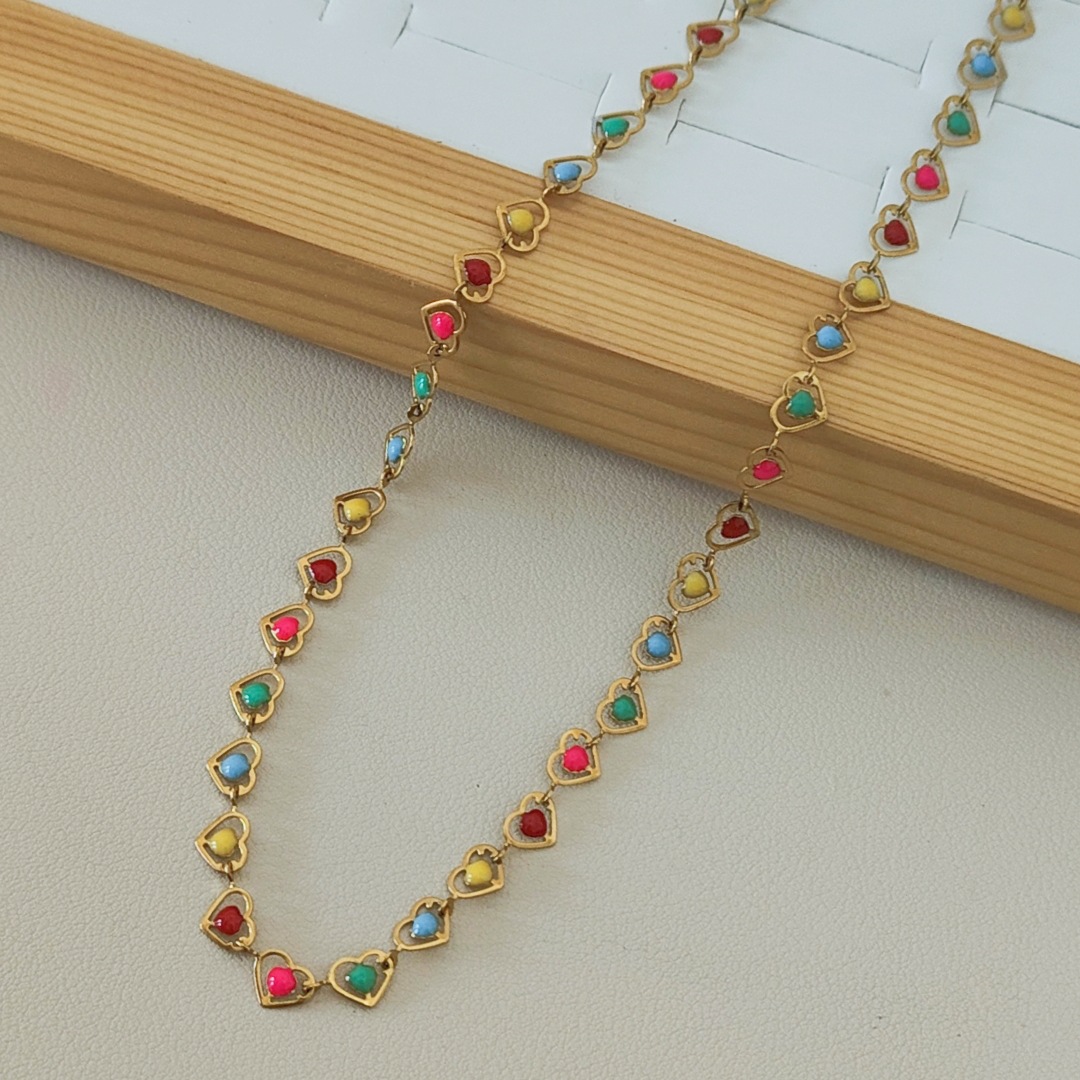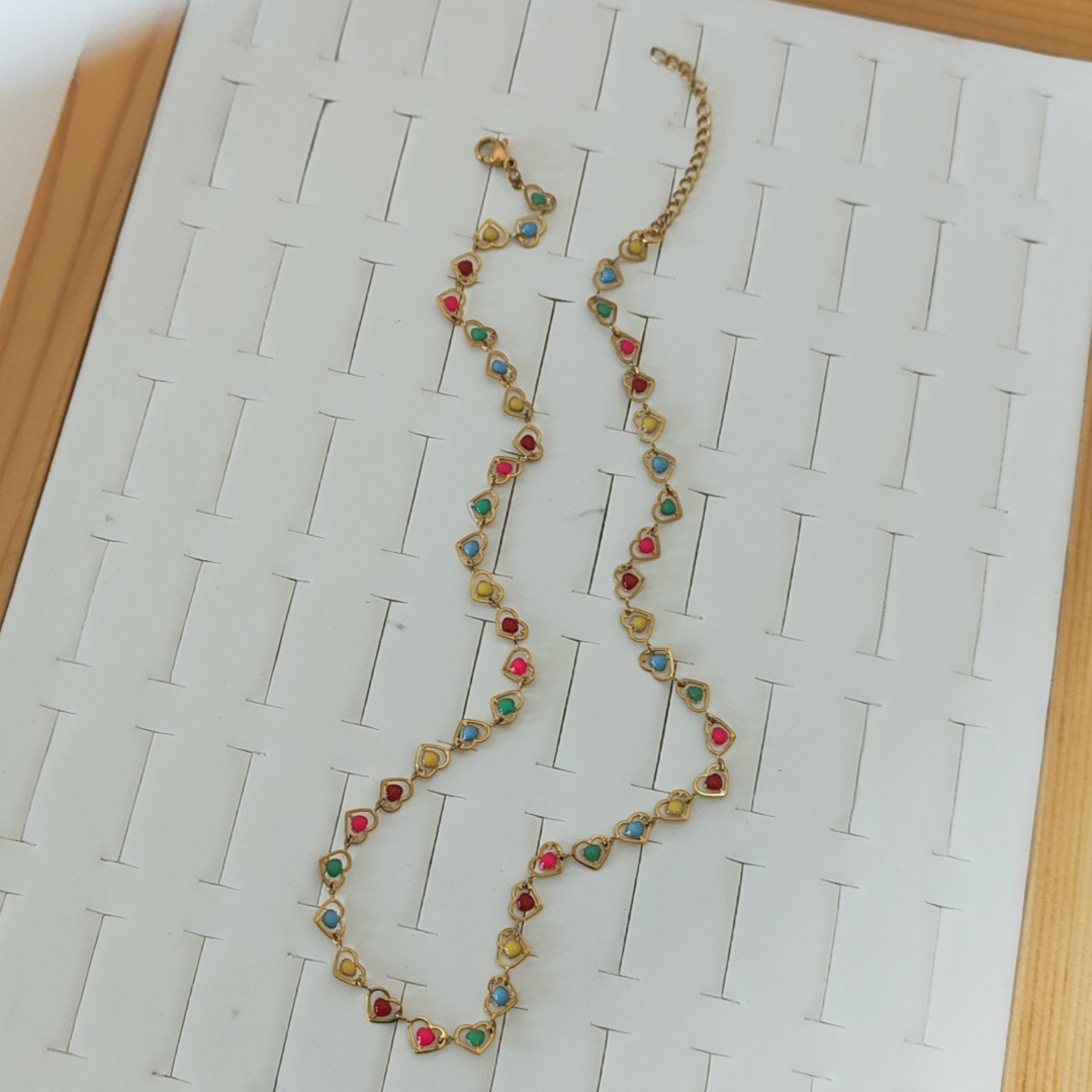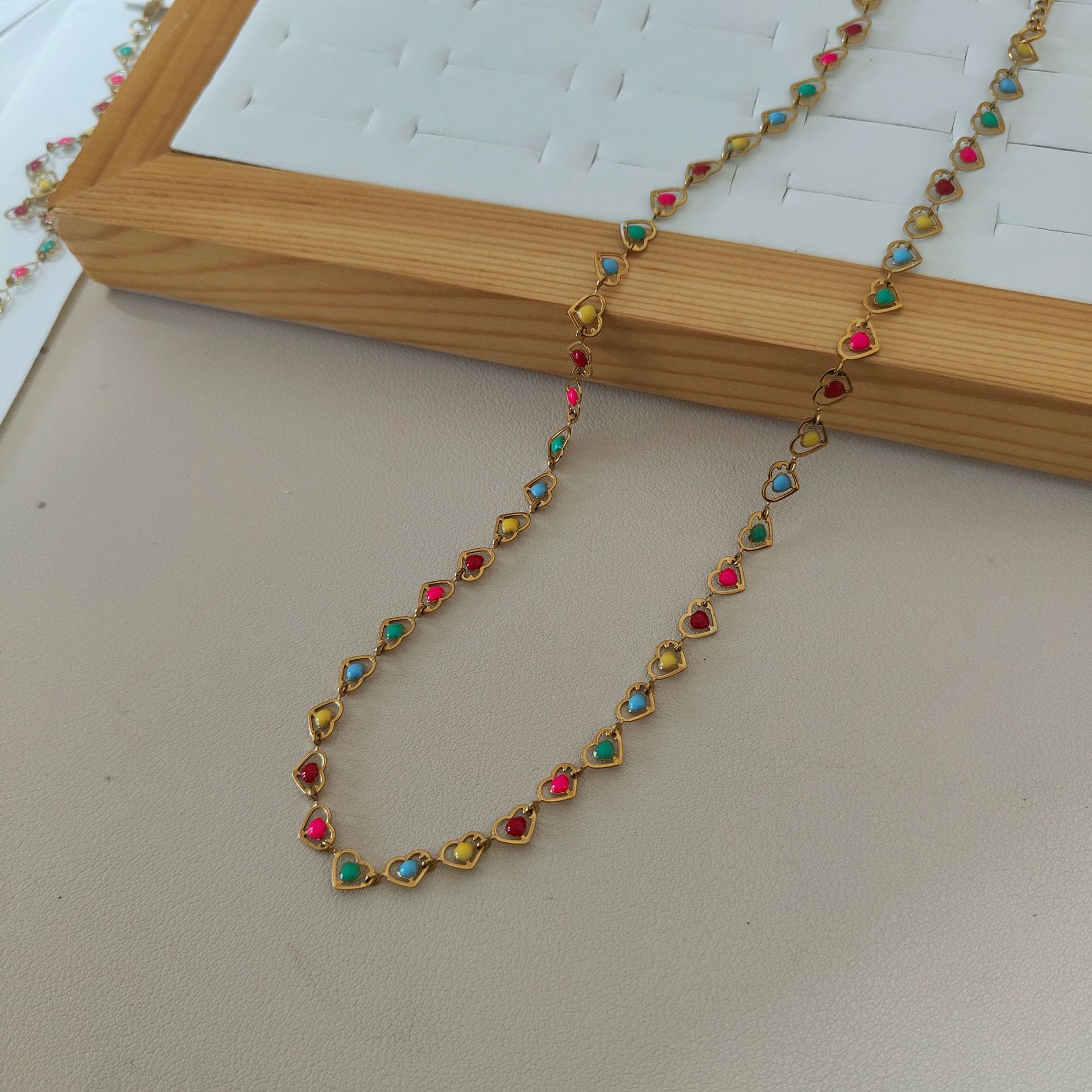 Ruostumaton teräs Kaulakoru, 304 Stainless Steel, Sydän, kullan väri kullattu, naiselle & emali, monivärinen, Myymät PC