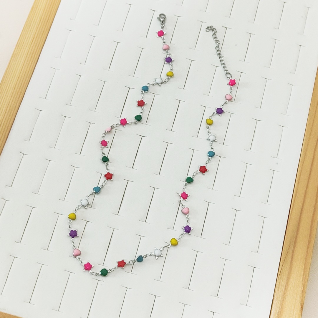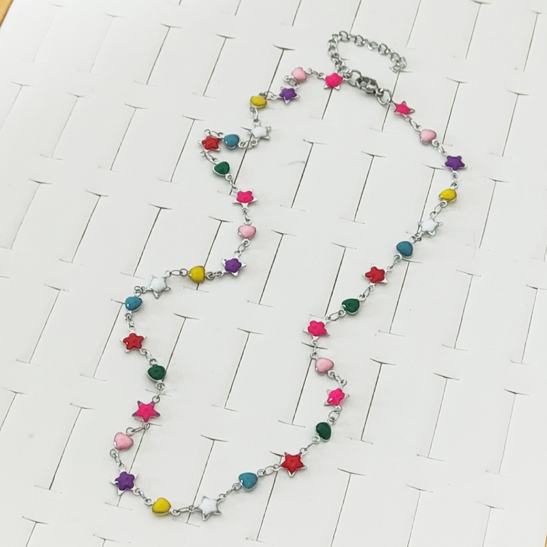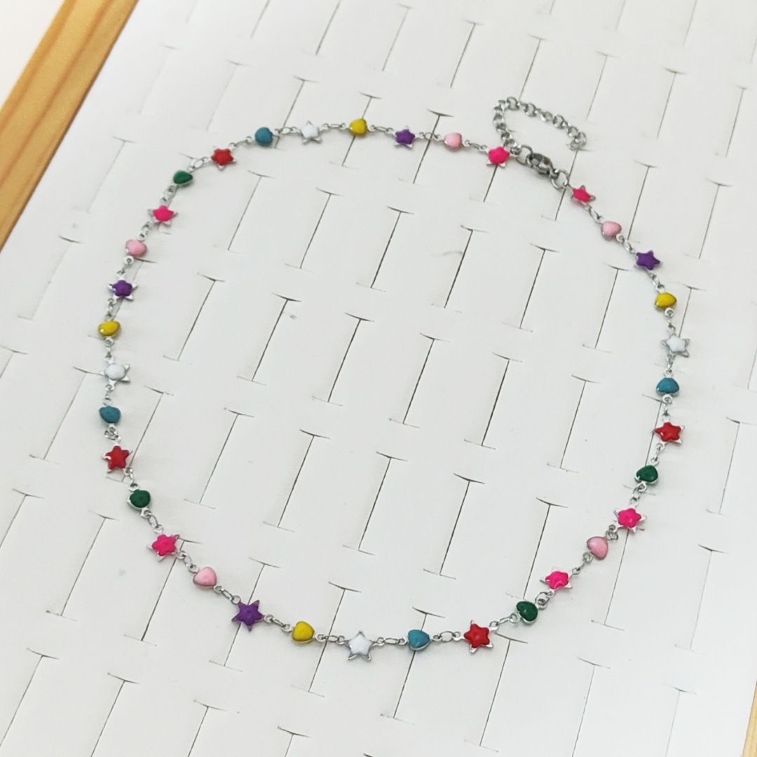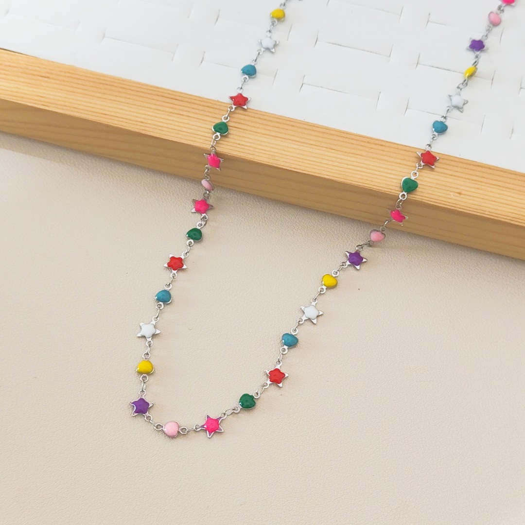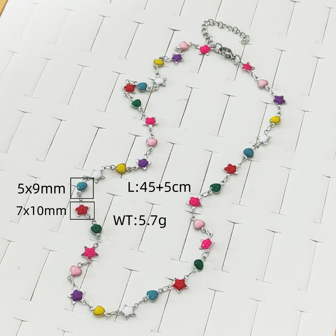 Ruostumaton teräs Kaulakoru, 304 Stainless Steel, Tähti, hopea päällystetty, naiselle & emali, monivärinen, Myymät PC