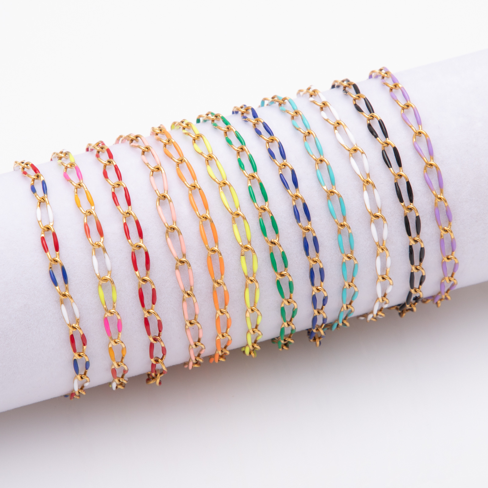 Ruostumaton teräs Kaulakoru, 304 Stainless Steel, 18K kullattu, pituuden valinta & Unisex & emali, enemmän värejä valinta, Myymät PC