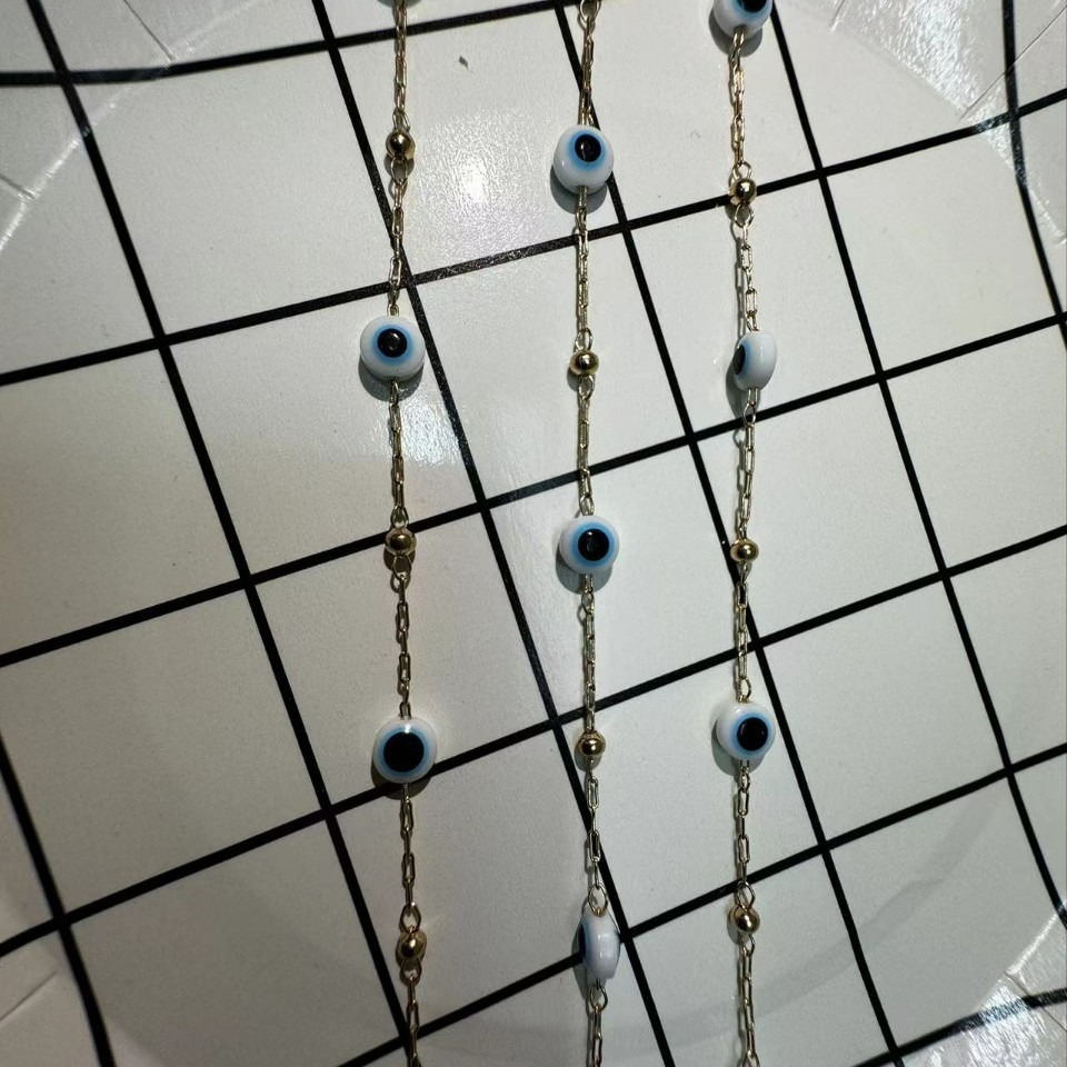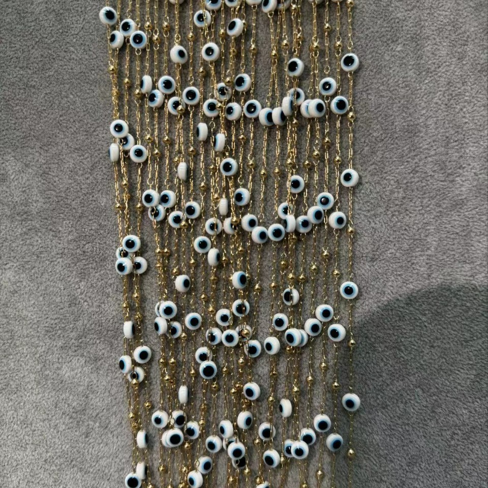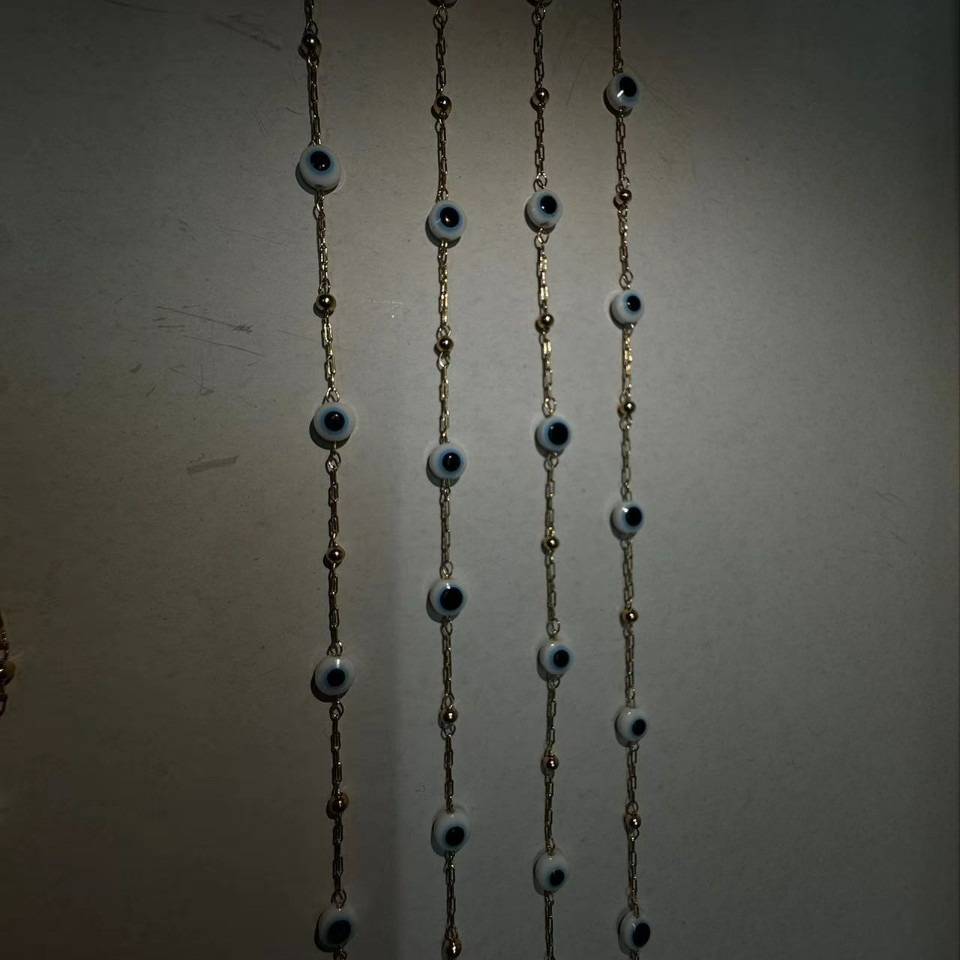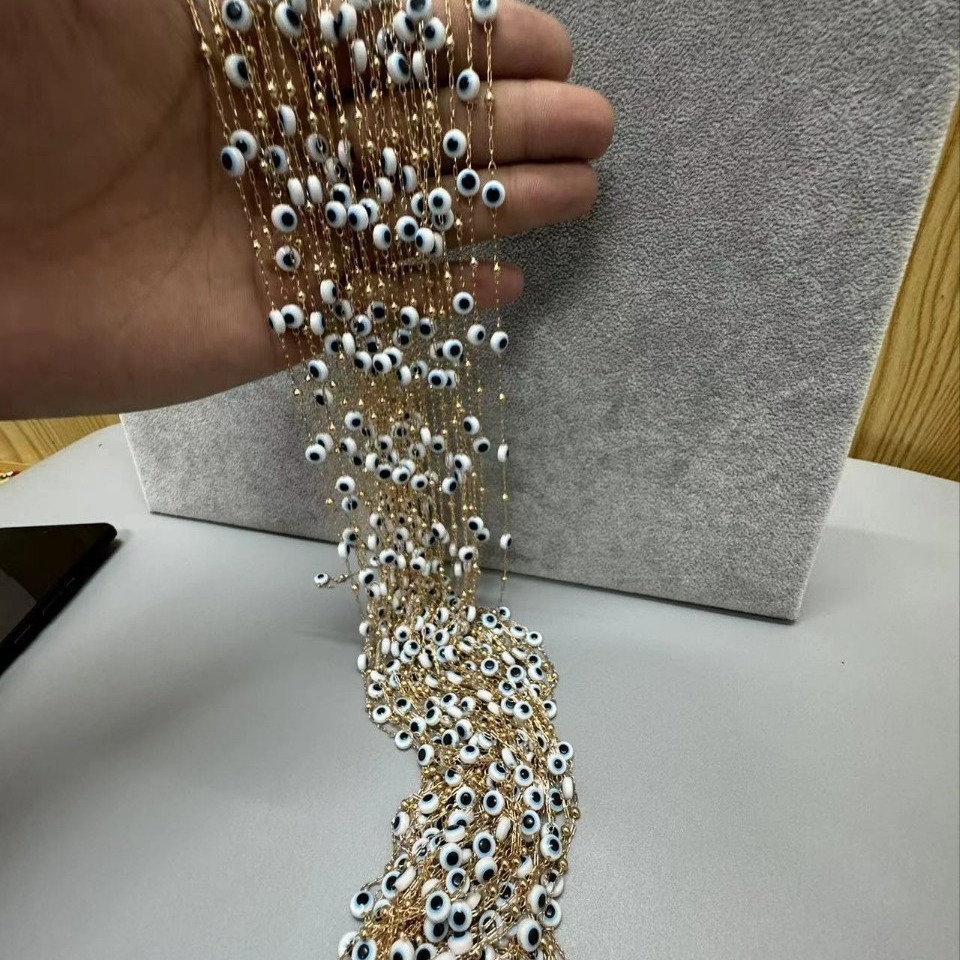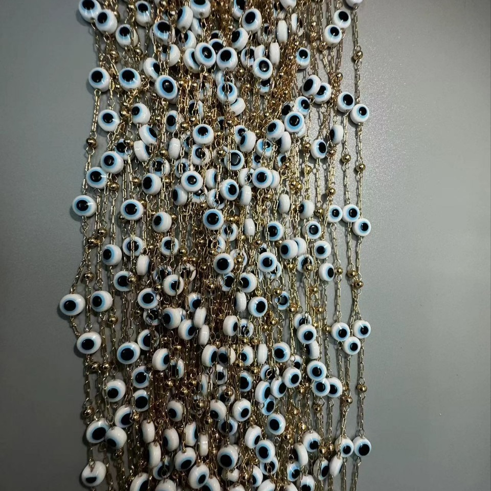 Jalokivi kaulakoru ketju, Messinki, Pyöreä, kullan väri kullattu, tee-se-itse & paha silmä kuvio & emali, nikkeli, lyijy ja kadmium vapaa, Myymät m