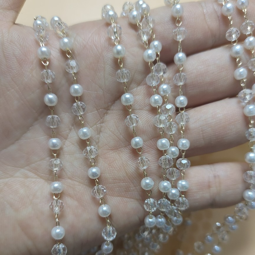 Jalokivi kaulakoru ketju, Messinki, kanssa Muovi Pearl, Kukka, kullan väri kullattu, tee-se-itse, valkoinen, nikkeli, lyijy ja kadmium vapaa, Myymät m