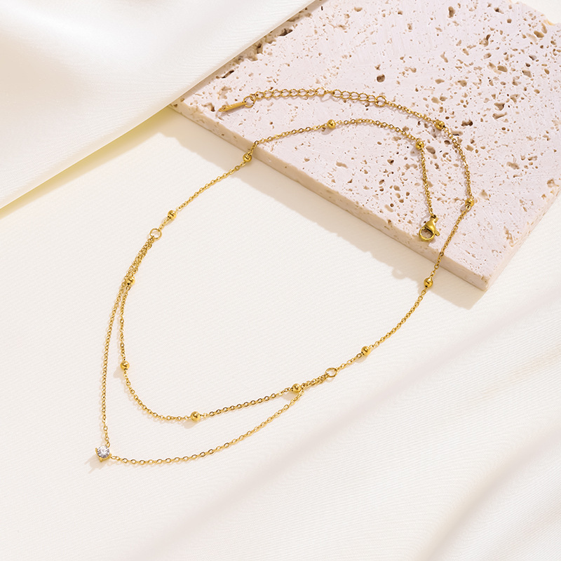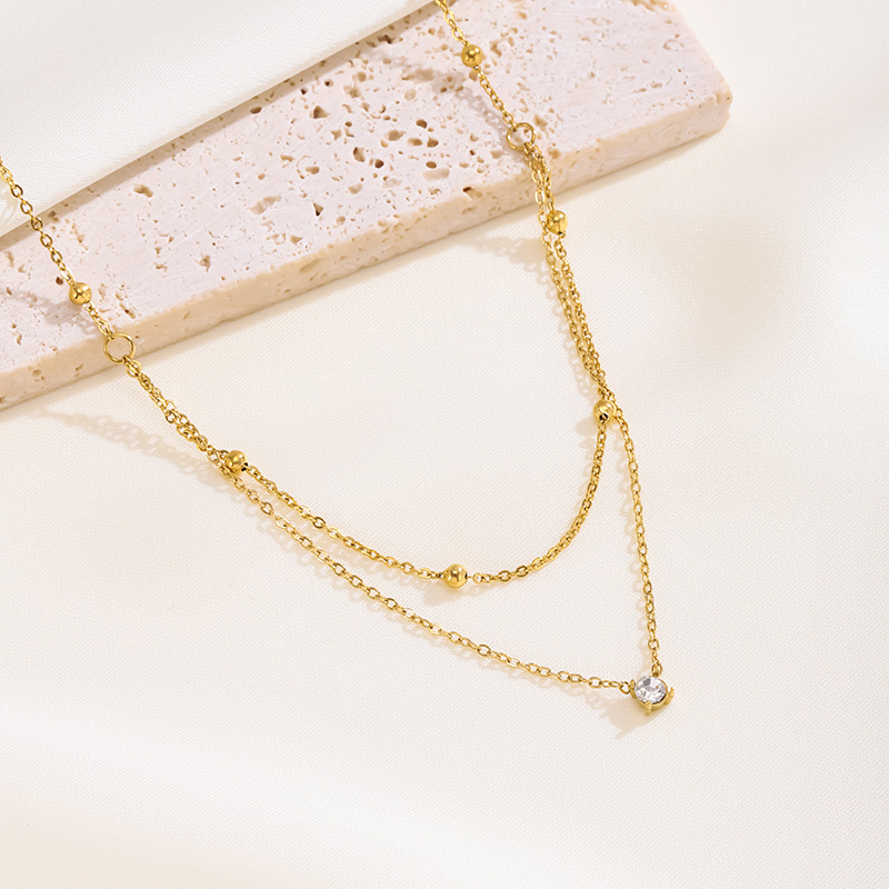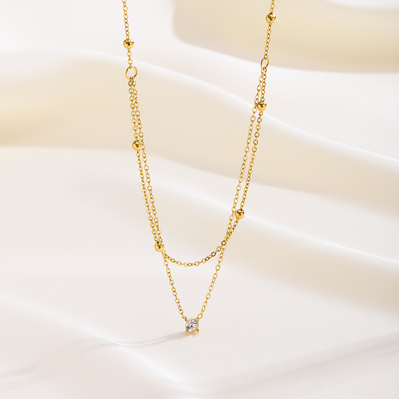 Stainless Steel korut kaulakoru, 304 Stainless Steel, päällystetty, Kaksinkertainen kerros & naiselle & tekojalokivi, kultainen, Pituus N. 41-50 cm, Myymät PC