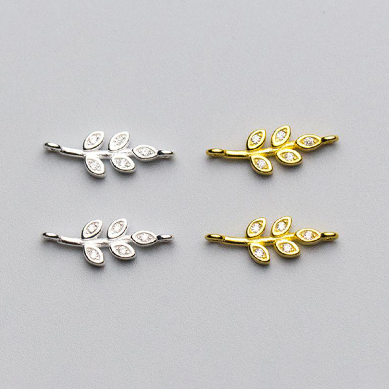 925 Sterling Silver liittimet, Lehtiä, päällystetty, tee-se-itse & Micro Pave kuutiometriä zirkonia, enemmän värejä valinta, 16x5x1.50mm, Myymät PC