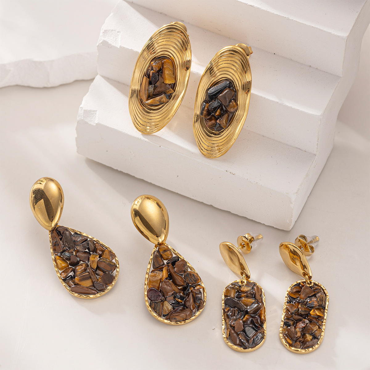 Jalokivi korut Helmet, 304 Stainless Steel, kanssa Luonnollinen sora, kullan väri kullattu, muoti korut, enemmän värejä valinta, Myymät PC