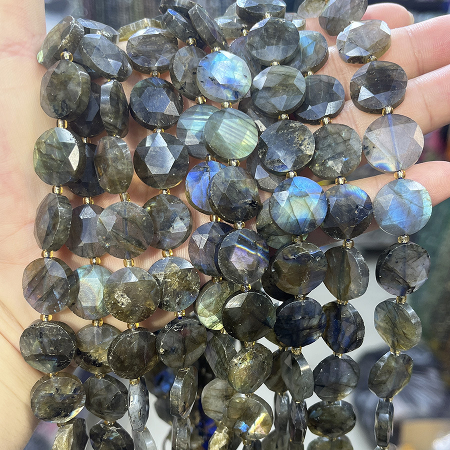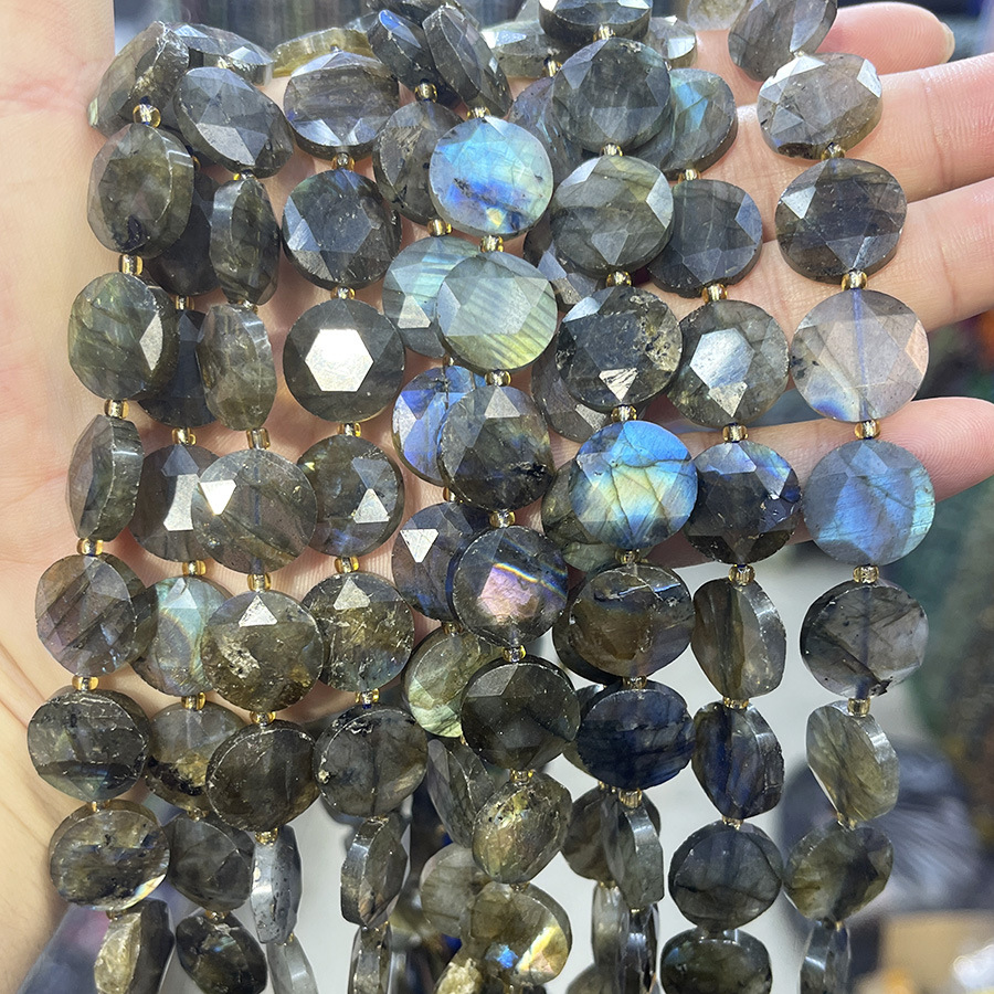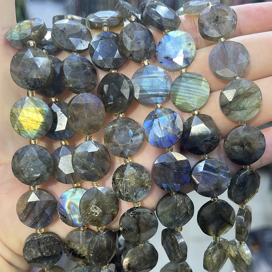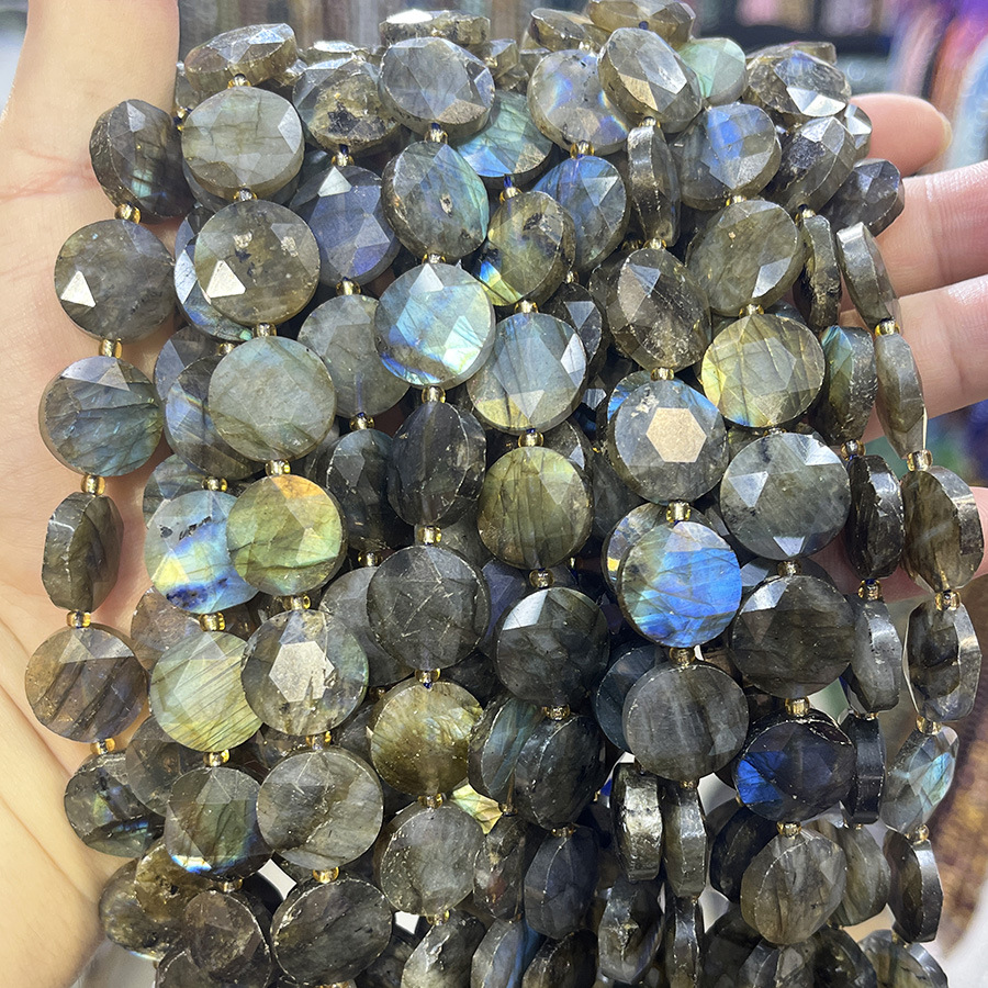 Labradorite Helmet, Litteä pyöreä, tee-se-itse, sekavärit, 15mm, Myyty Per 38 cm Strand