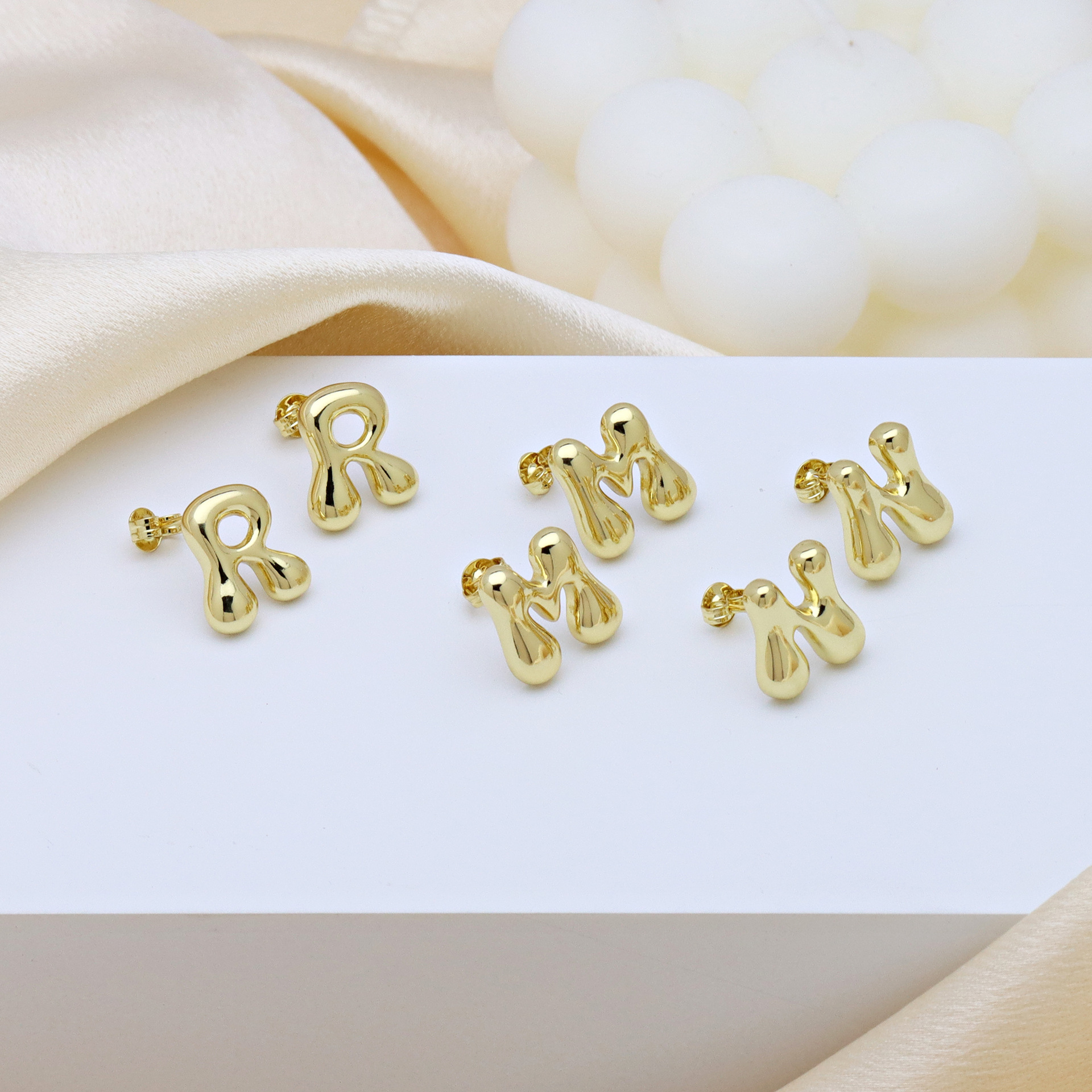 Messinik nasta Korvakorut, Messinki, kullan väri kullattu, kirjaimet ovat a-Ö & naiselle, enemmän värejä valinta, 14x14mm, Myymät Pair