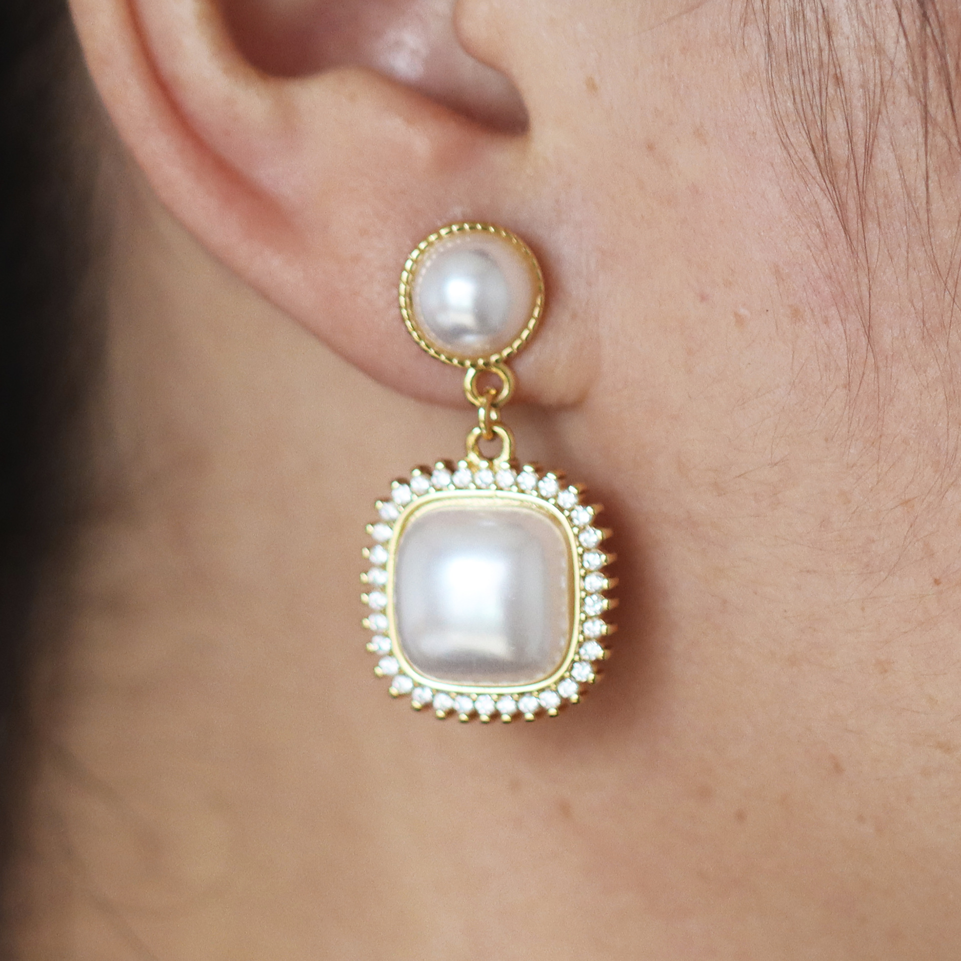 Messinik pudota Korvakorut, 304 Stainless Steel, kanssa Muovi Pearl, päällystetty, muoti korut & naiselle, Myymät Pair