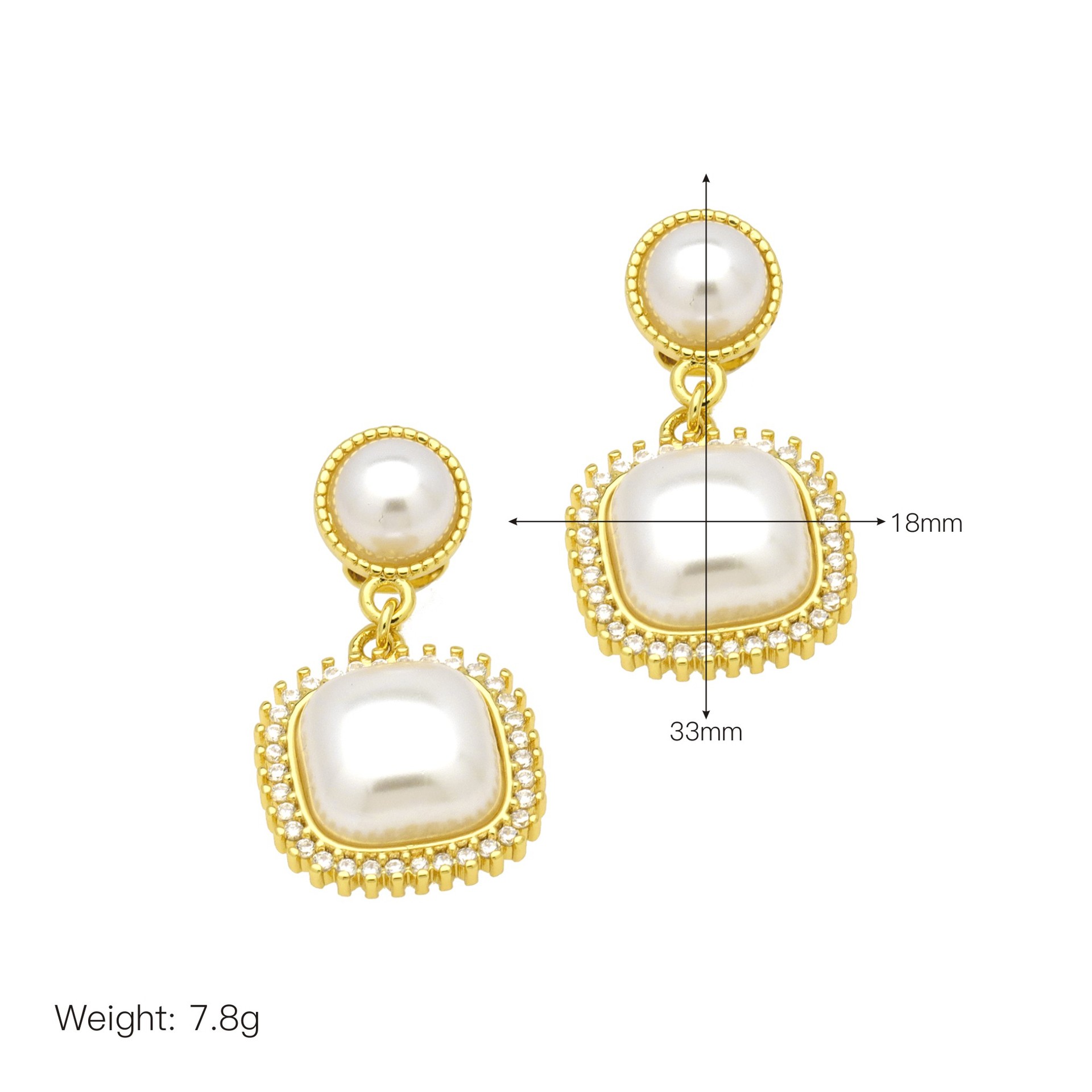 Messinik pudota Korvakorut, Messinki, kanssa Muovi Pearl, kullan väri kullattu, eri tyylejä valinta & Micro Pave kuutiometriä zirkonia & naiselle, enemmän värejä valinta, Myymät Pair