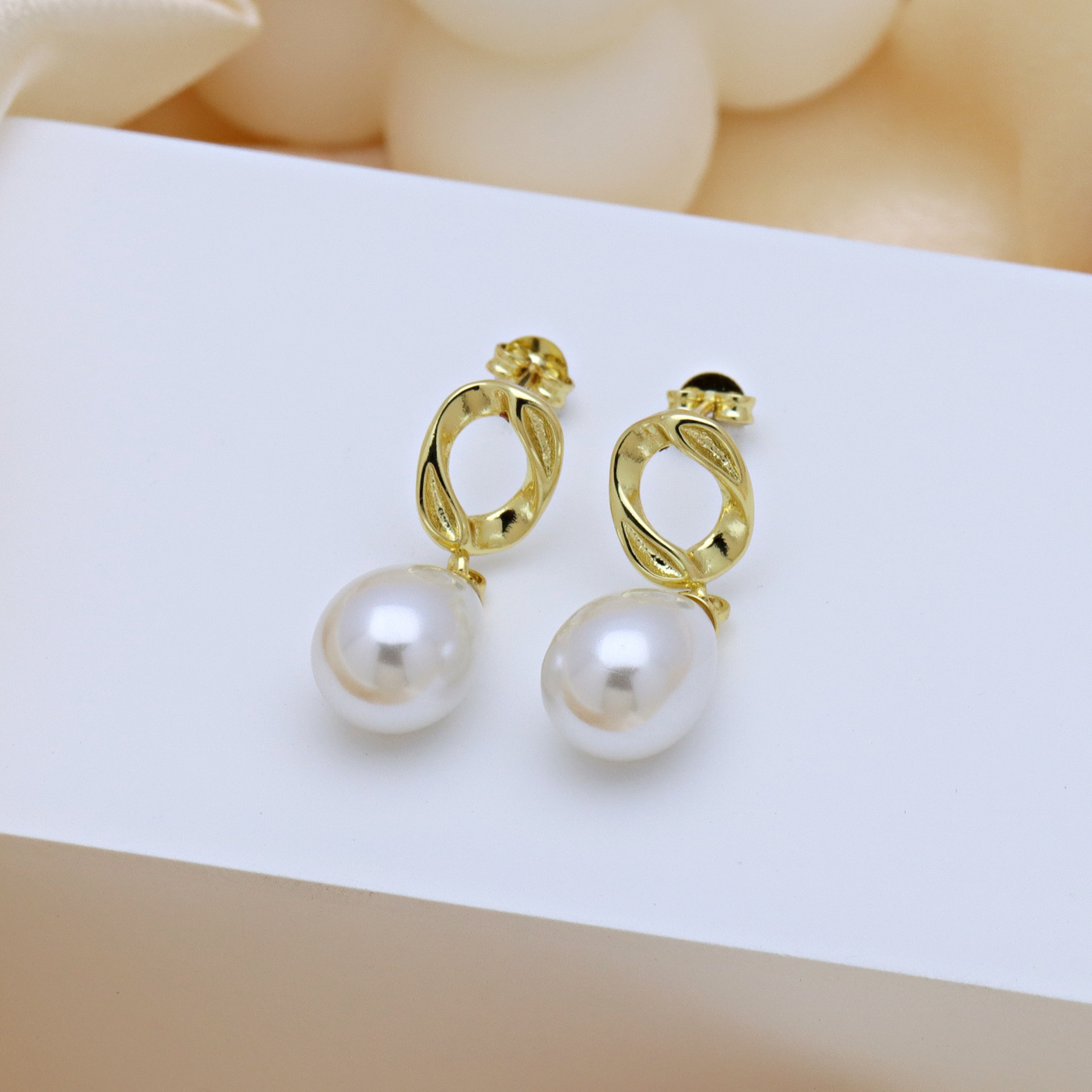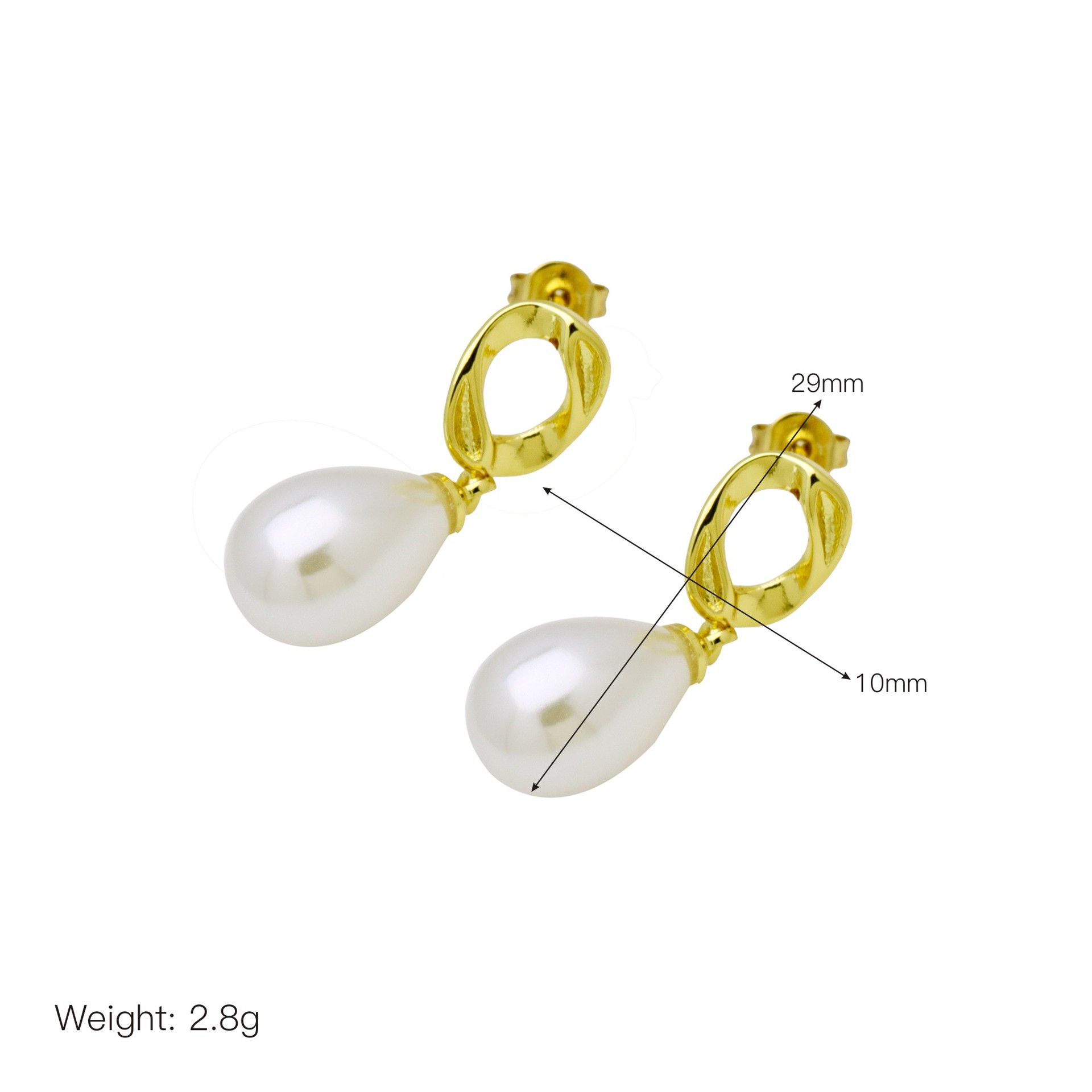 Messinik pudota Korvakorut, Messinki, kanssa Muovi Pearl, real kullattu, muoti korut & naiselle, Myymät Pair