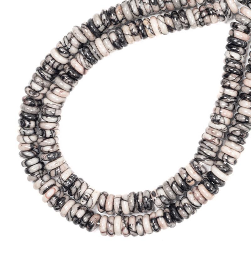 Musta Silk Stone Helmi, Litteä pyöreä, tee-se-itse, musta, 2x6mm, Myyty Per N. 38 cm Strand