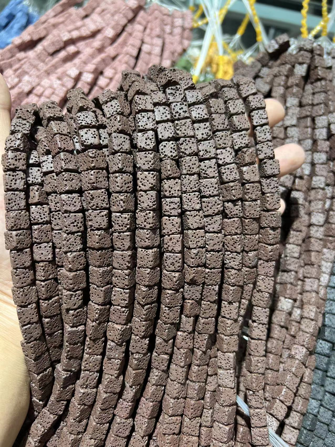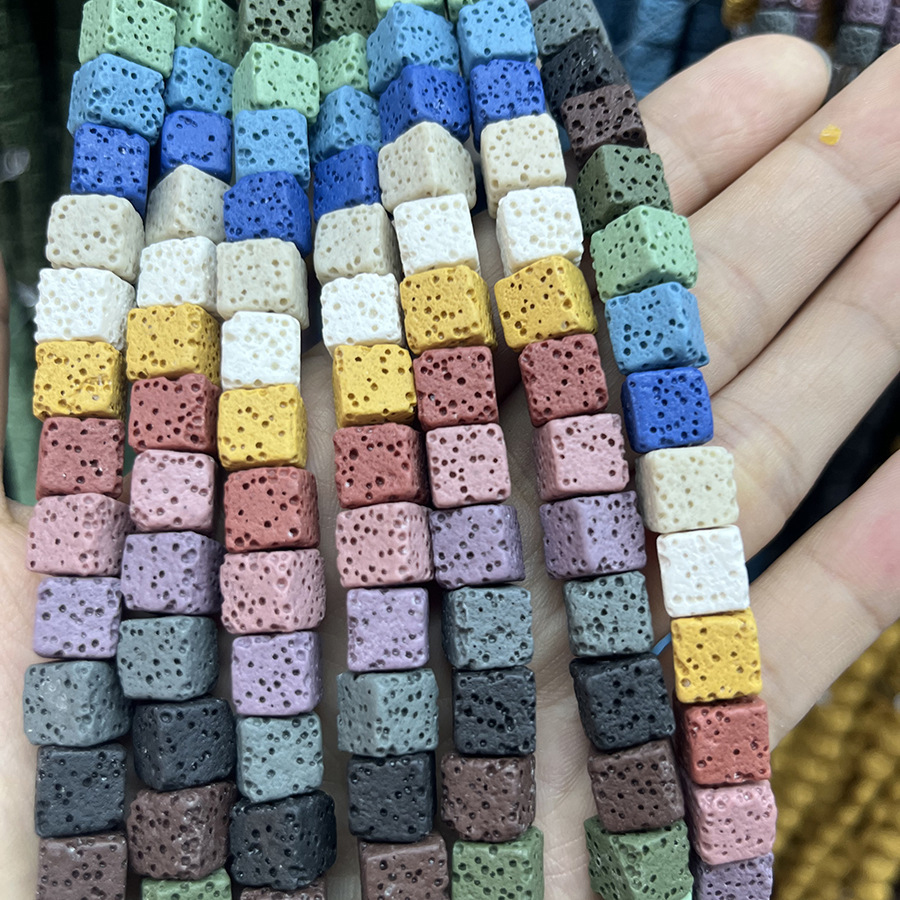 Natural Laavahelmet, Laava, Neliö, tee-se-itse, enemmän värejä valinta, 4x4mm, Myyty Per N. 38 cm Strand