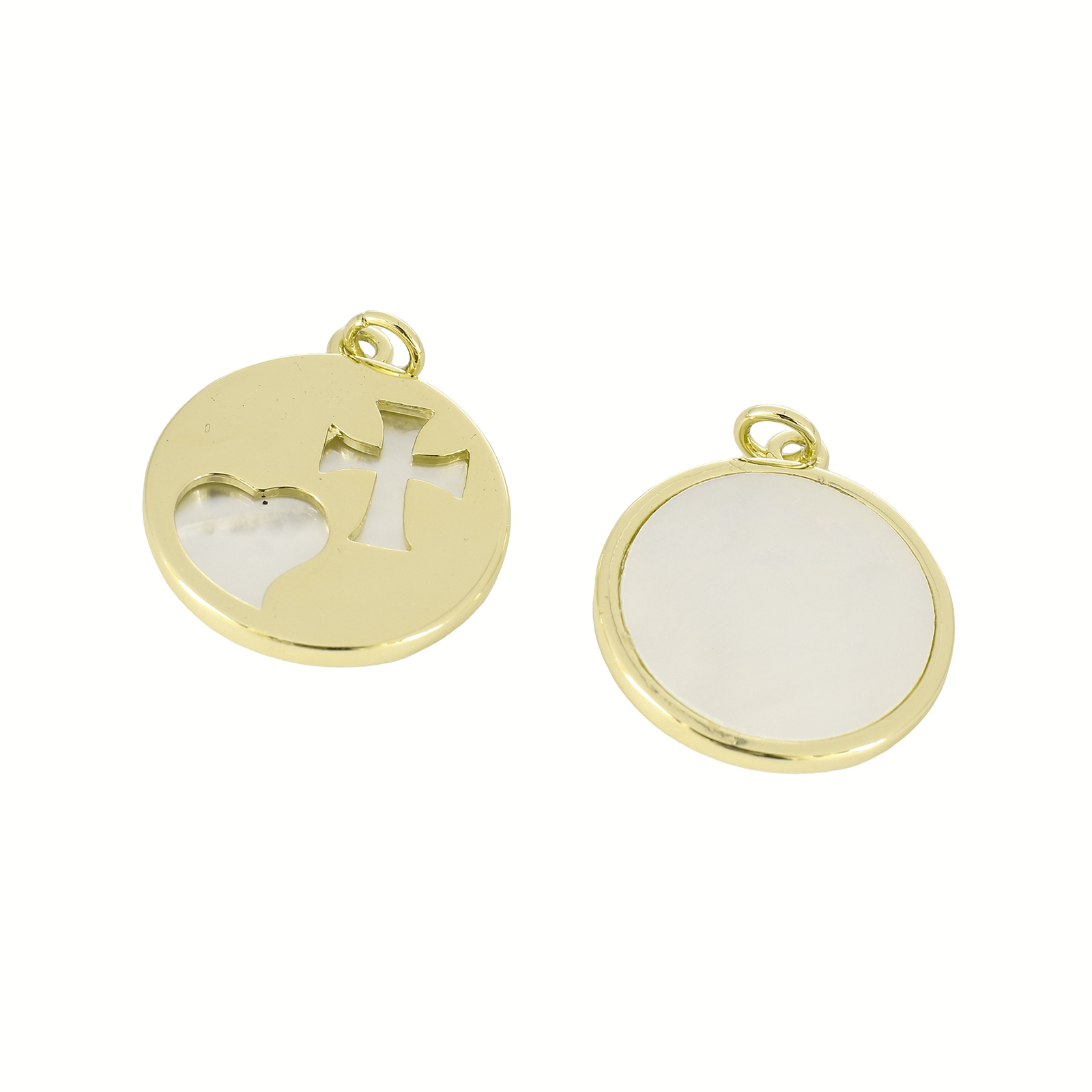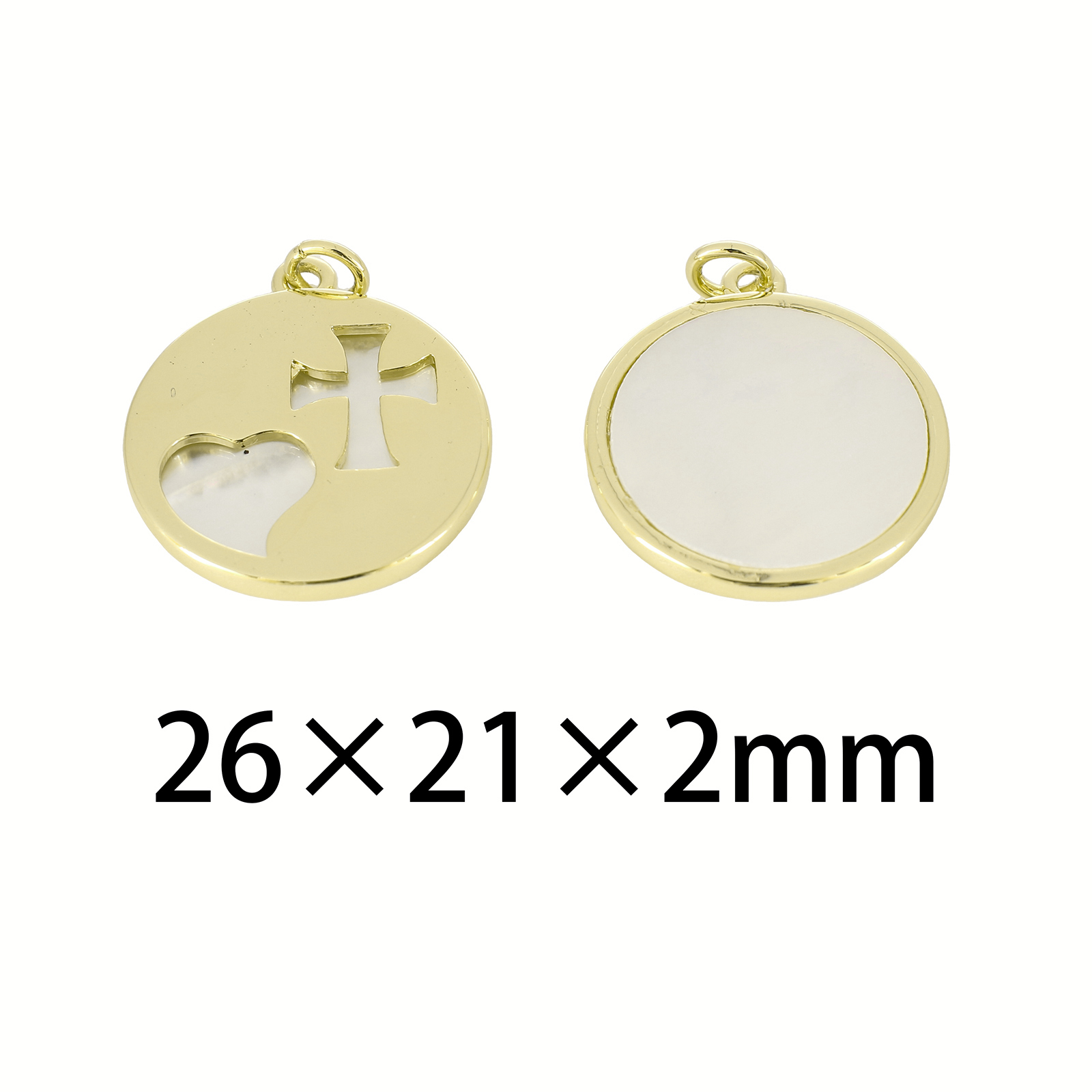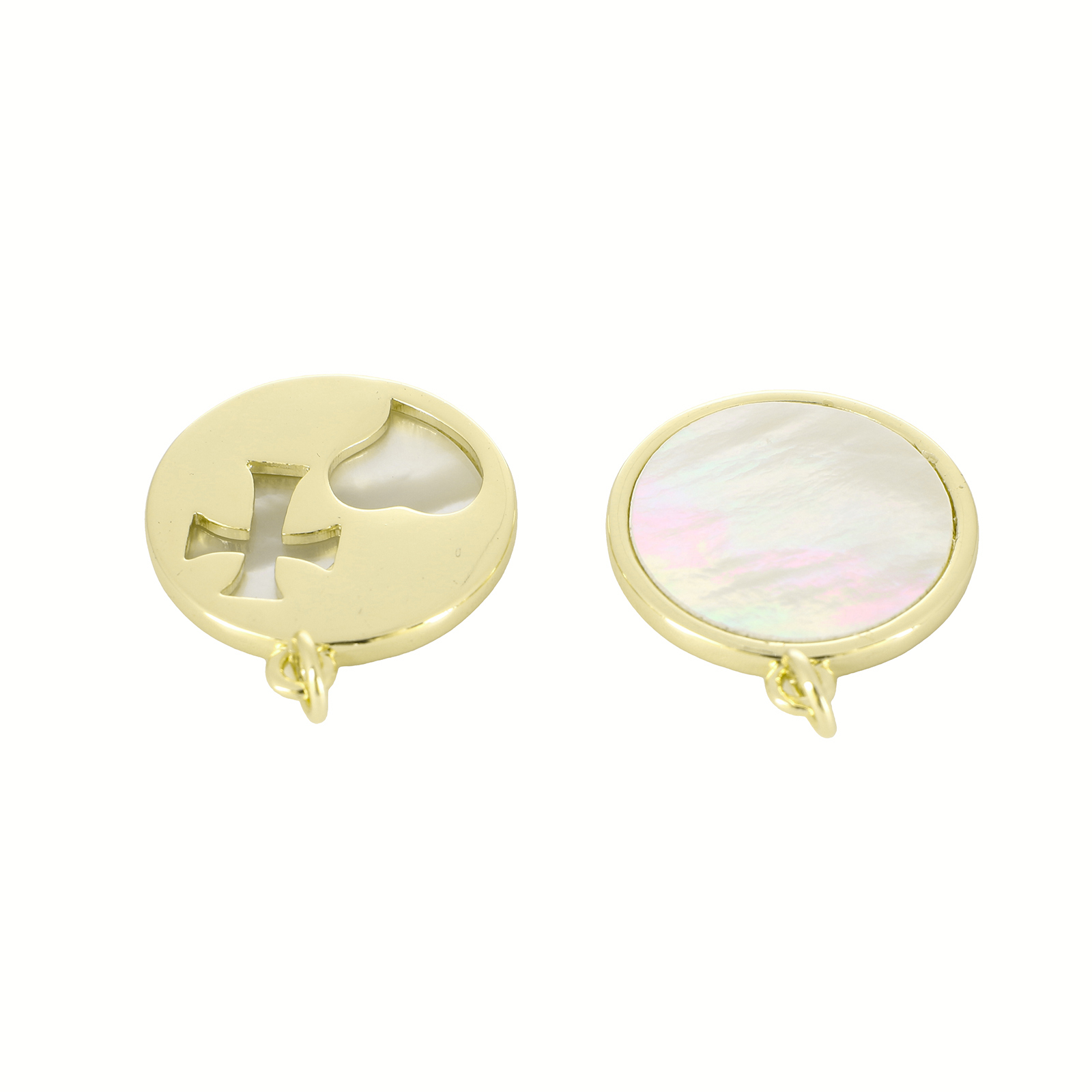 Natural White Shell Riipukset, Messinki, kanssa Valkoinen kuori, Litteä pyöreä, kullan väri kullattu, tee-se-itse & ontto, 26x21x2mm, Myymät PC