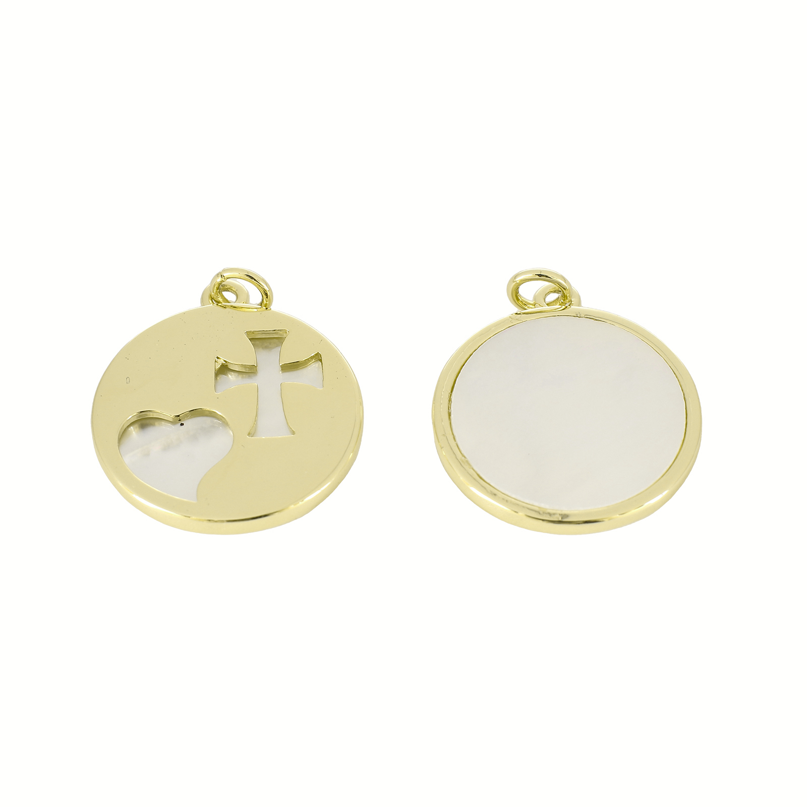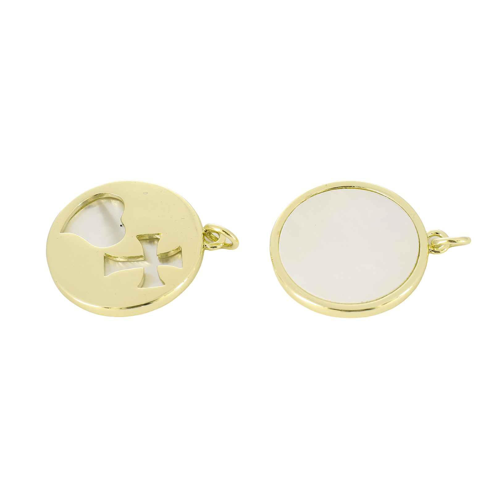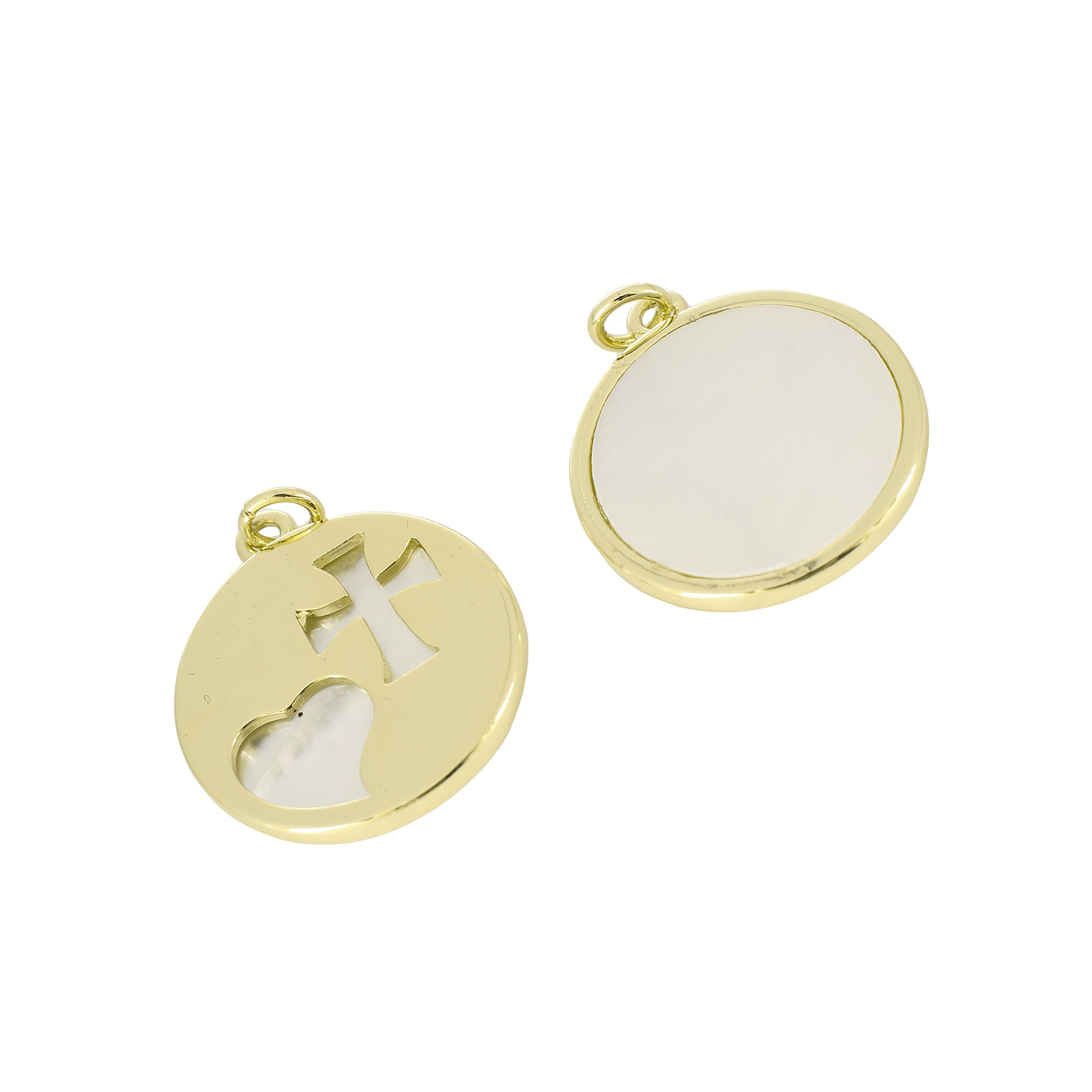Natural White Shell Riipukset, Messinki, kanssa Valkoinen kuori, Litteä pyöreä, kullan väri kullattu, tee-se-itse & ontto, 26x21x2mm, Myymät PC