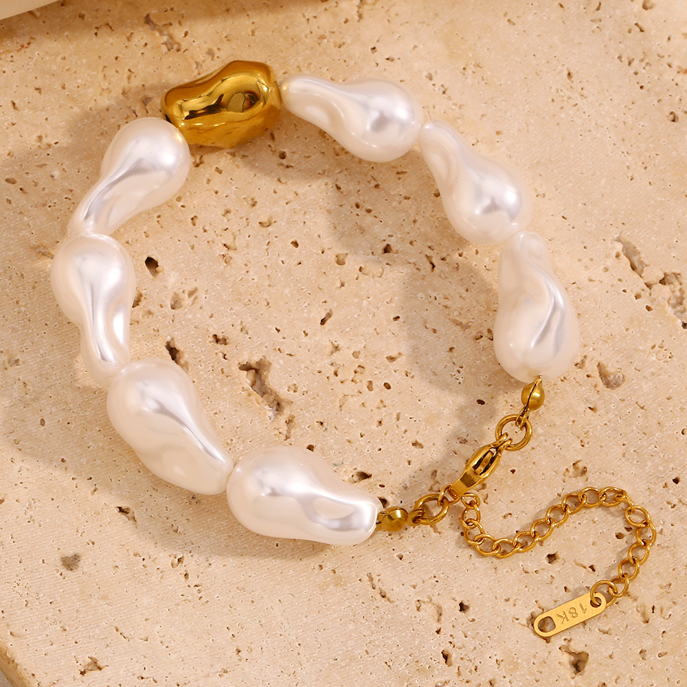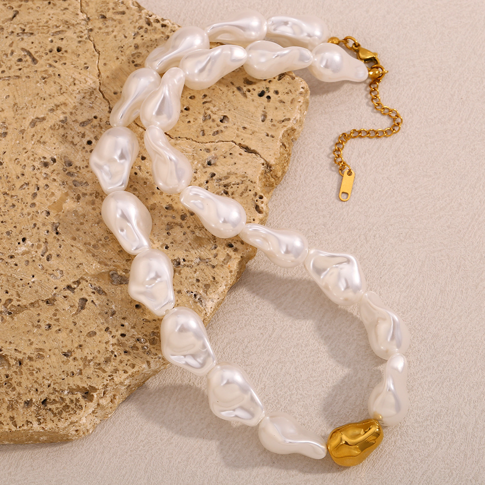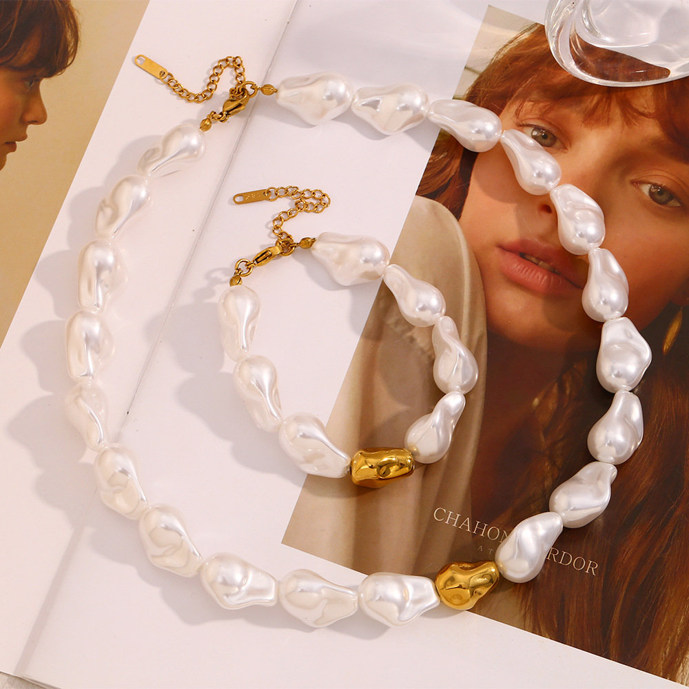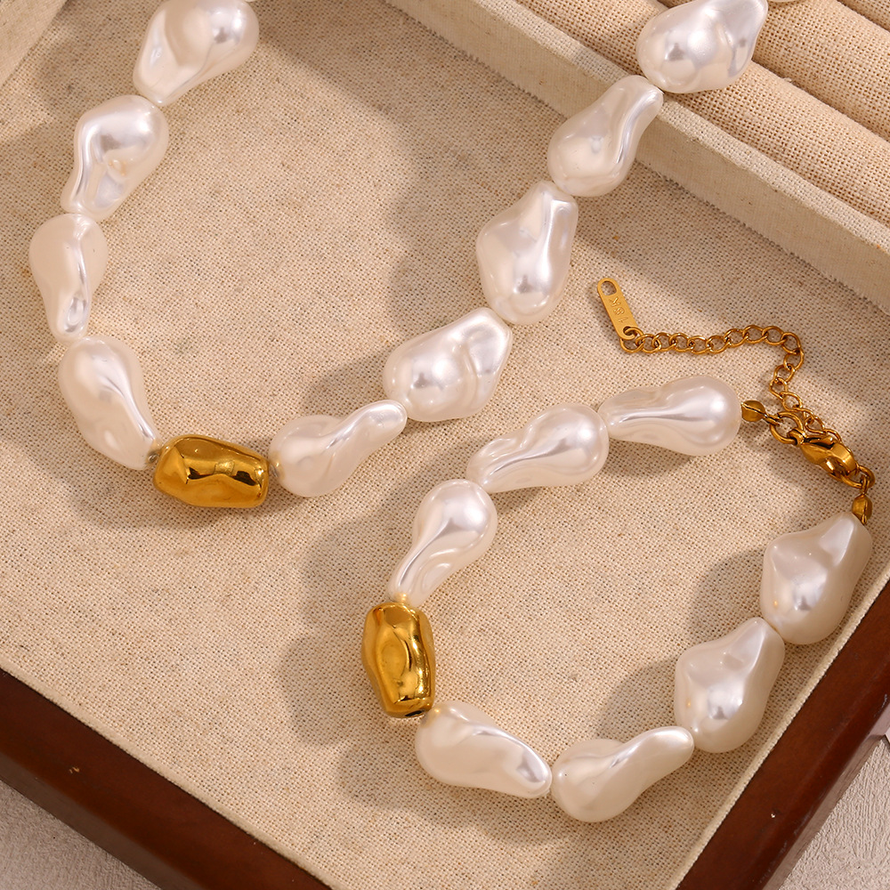 1:Baroque imitation pearl bracelet - gold2:Baroque imitation pearl necklace - gold