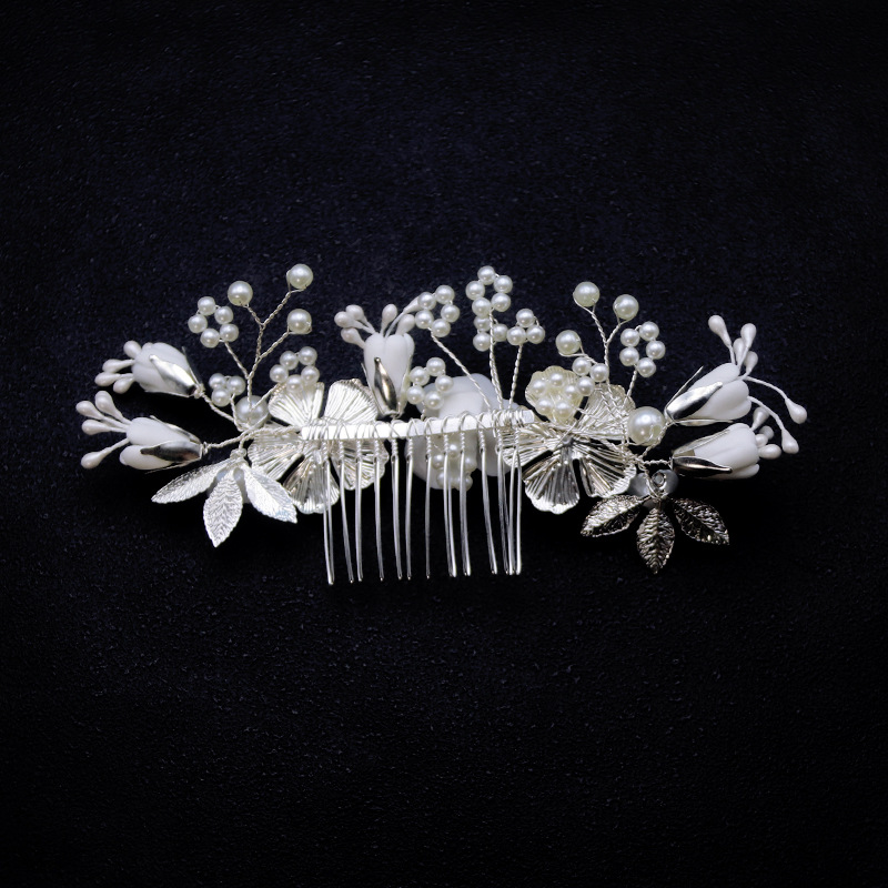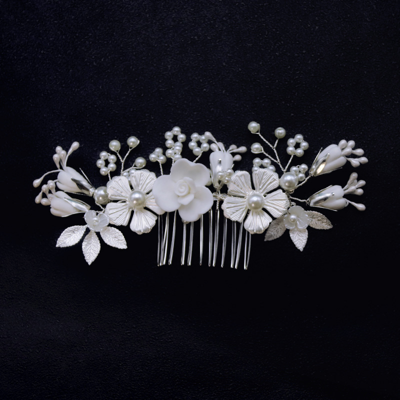 Koriste-kammat, Sinkkiseos, kanssa messinkilanka & Polymer Clay & Muovi Pearl, käsintehty, muoti korut & naiselle, hopea, 150x65mm, Myymät PC