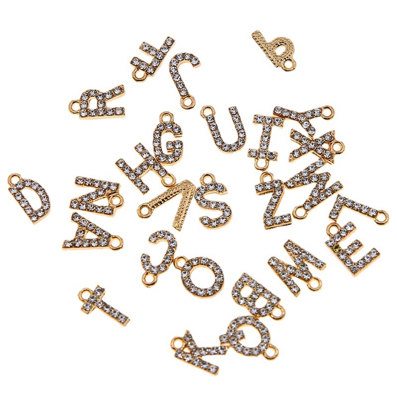Sinkkiseos Alphabet riipukset, Aakkoset - Kirjain, kullan väri kullattu, tee-se-itse & eri tyylejä valinta & tekojalokivi, 12x7x2mm, Myymät PC