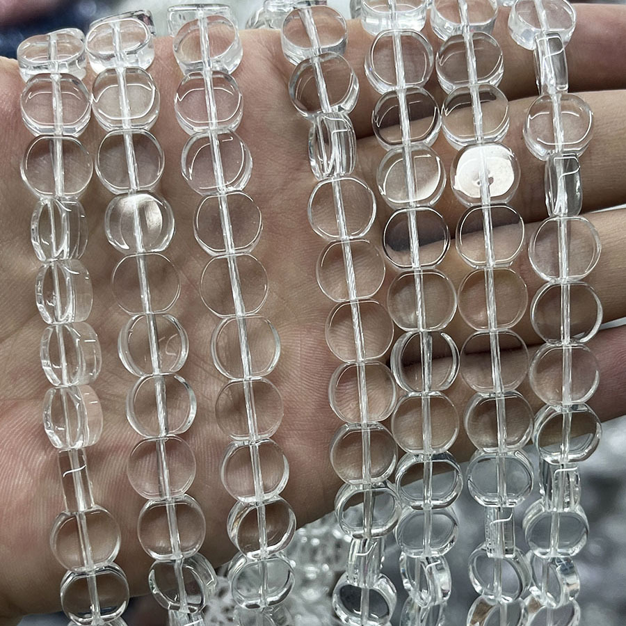 Luonnollisen kirkas kvartsi helmiä, Clear Quartz, levy, tee-se-itse, selkeä, 9-10mm, Myymät Strand