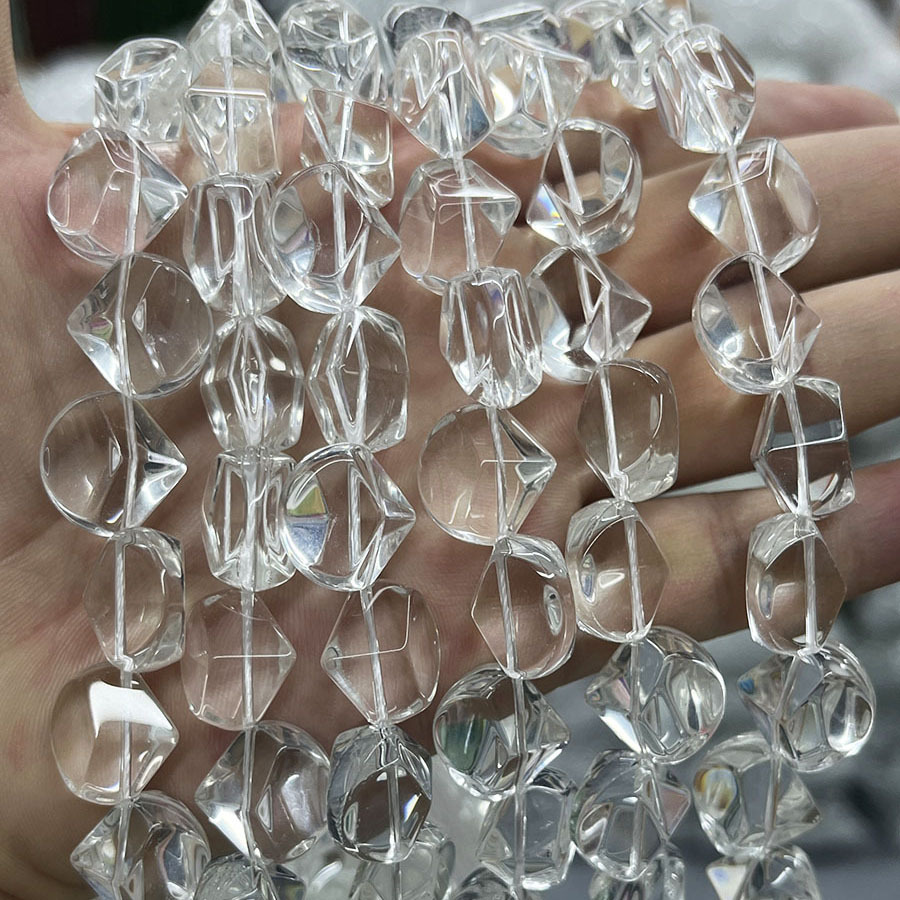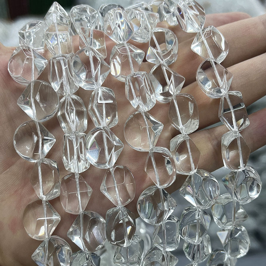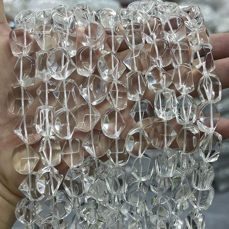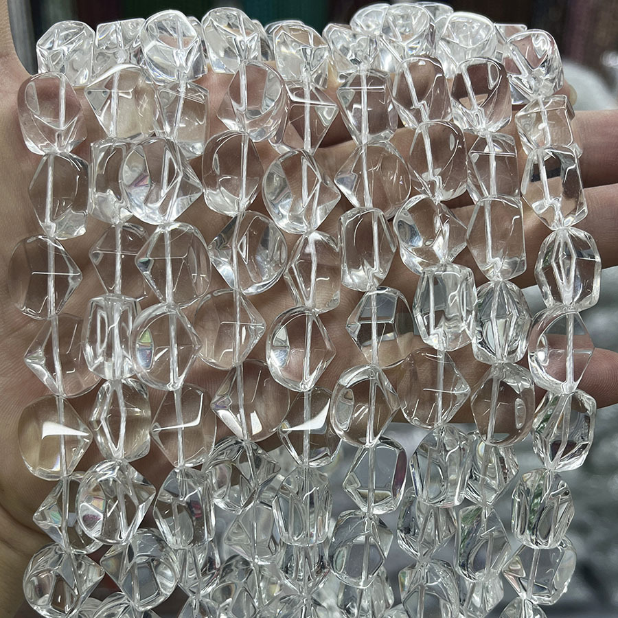 Luonnollisen kirkas kvartsi helmiä, Clear Quartz, Epäsäännöllinen, tee-se-itse, selkeä, 14-15mm, Myyty Per N. 38 cm Strand