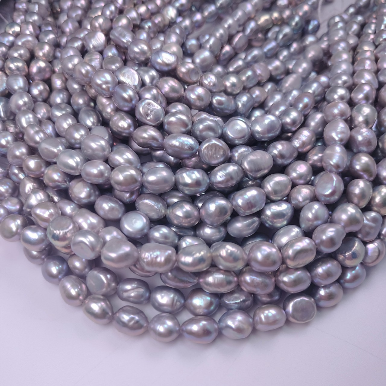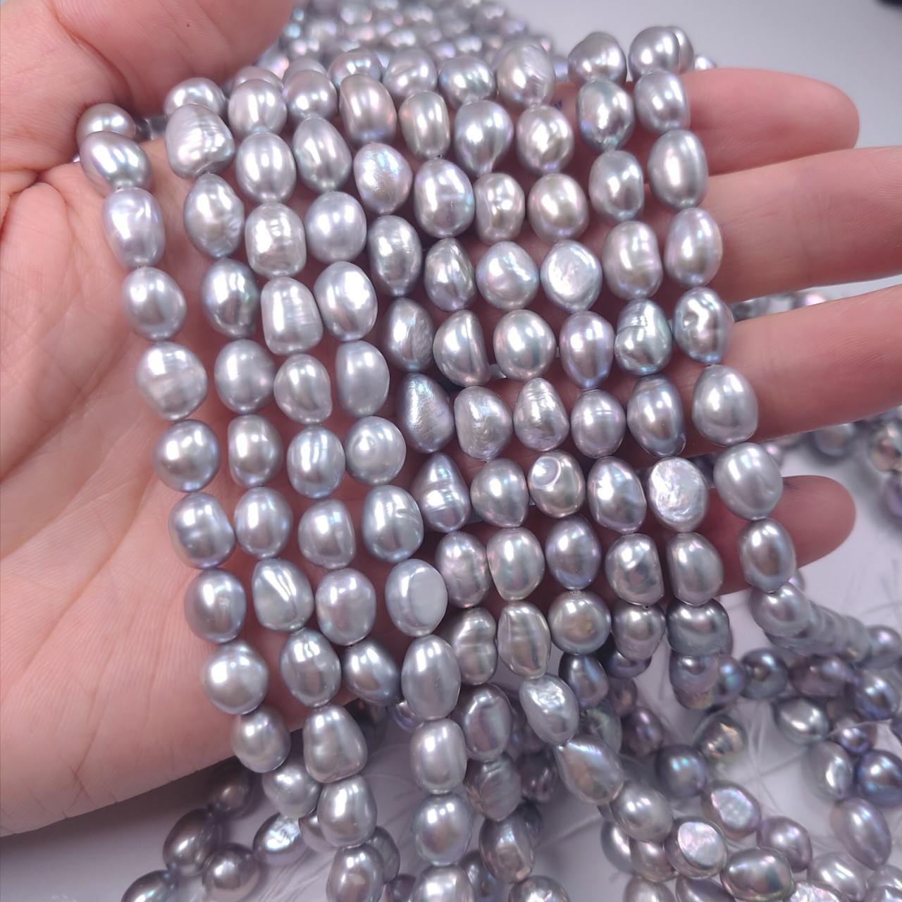 Keishi Viljellyt makeanveden helmen helmet, tee-se-itse, hopeanharmaa, 8x9mm, 42PC/Strand, Myymät Strand