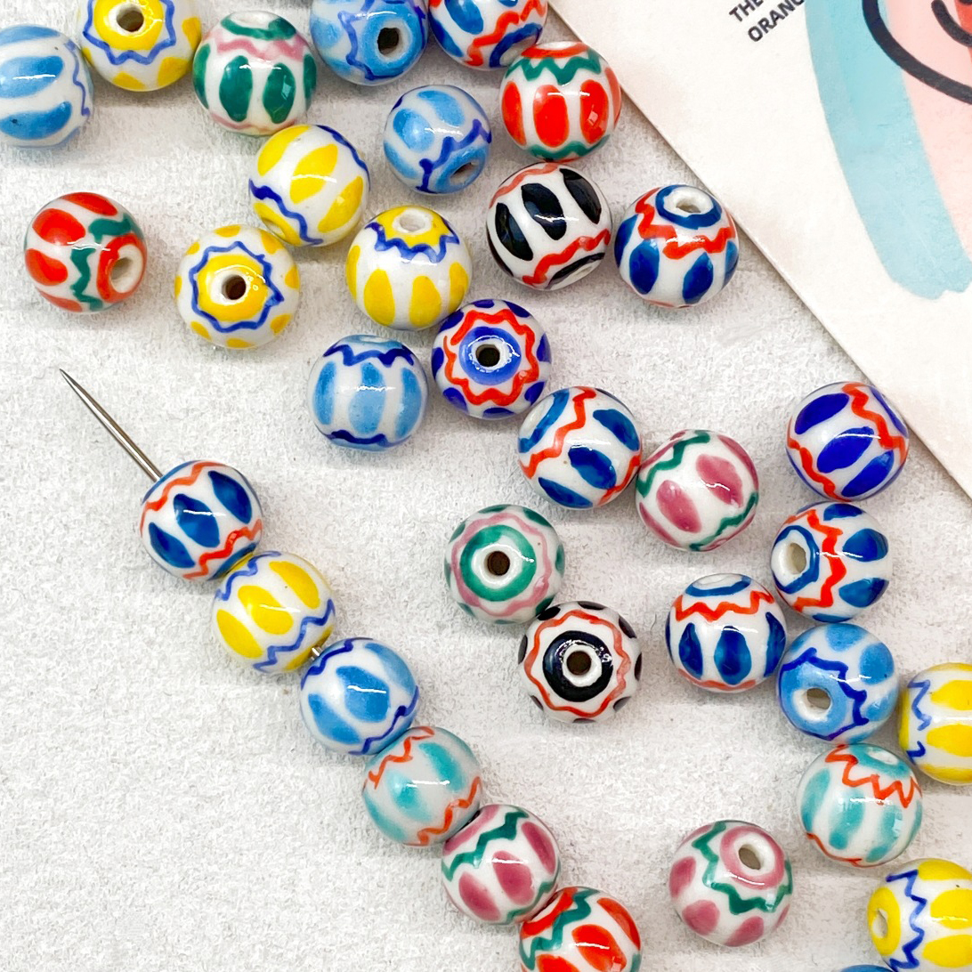 Posliini korut Helmet, Pyöreä, käden piirustus, Vintage & tee-se-itse, enemmän värejä valinta, 10mm, Reikä:N. 2mm, Myymät PC