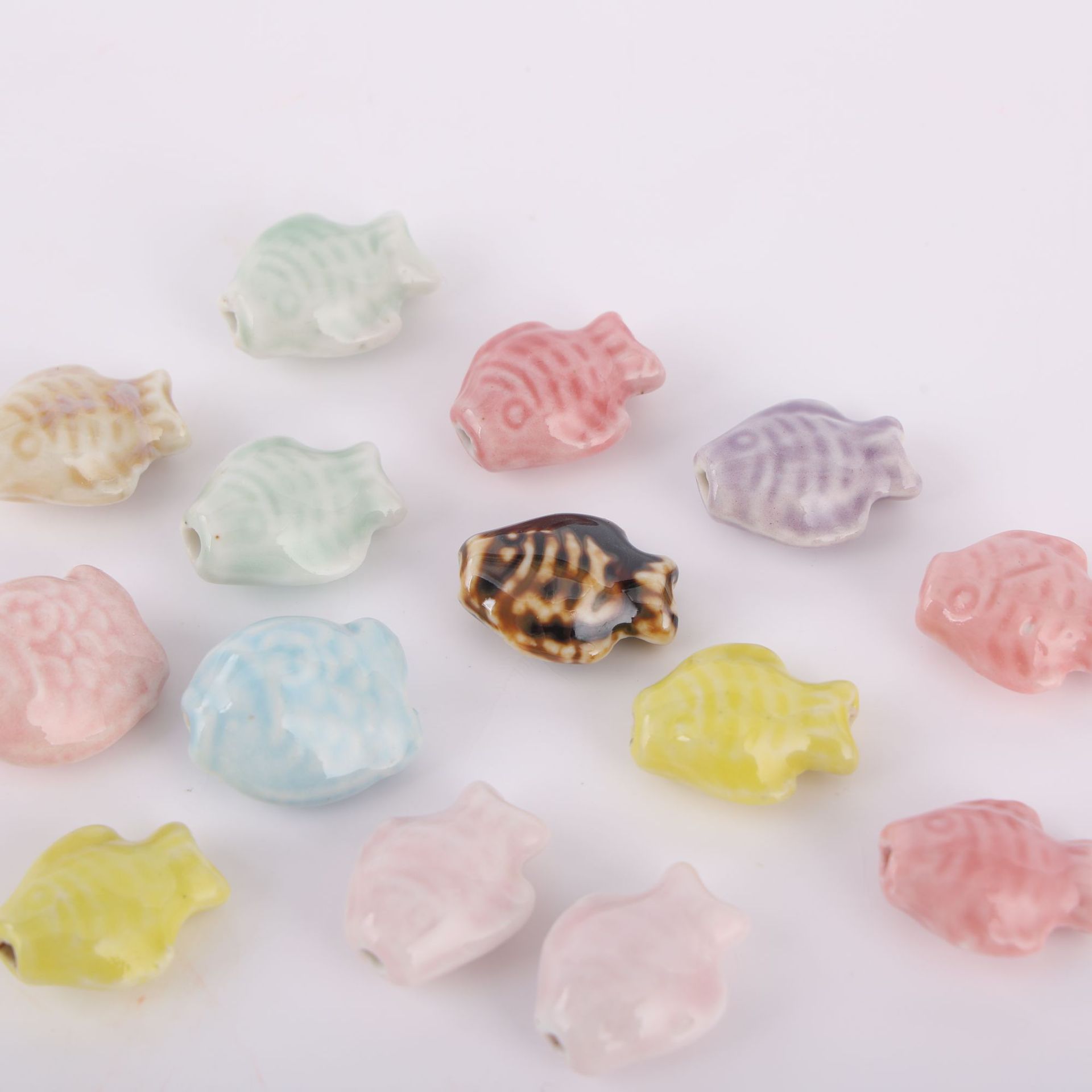 Posliini korut Helmet, Kala, lasitettu, tee-se-itse, enemmän värejä valinta, Reikä:N. 2.5mm, Myymät PC