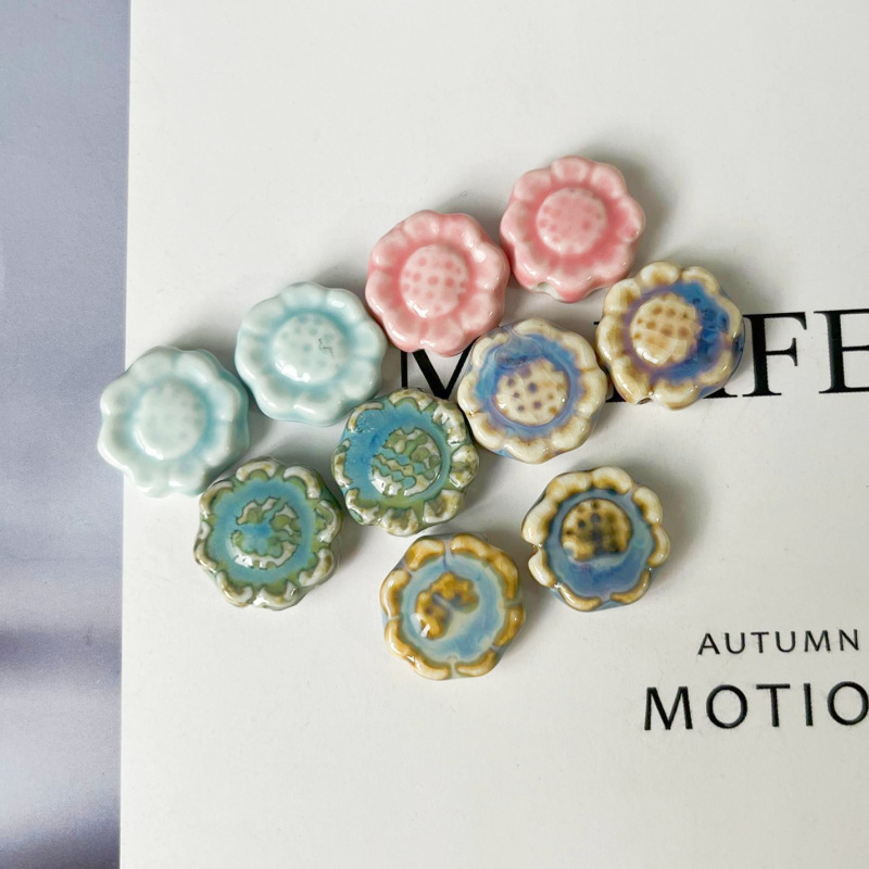 Posliini korut Helmet, Auringonkukka, tee-se-itse, enemmän värejä valinta, 16.70x6mm, Reikä:N. 2.3mm, Myymät PC