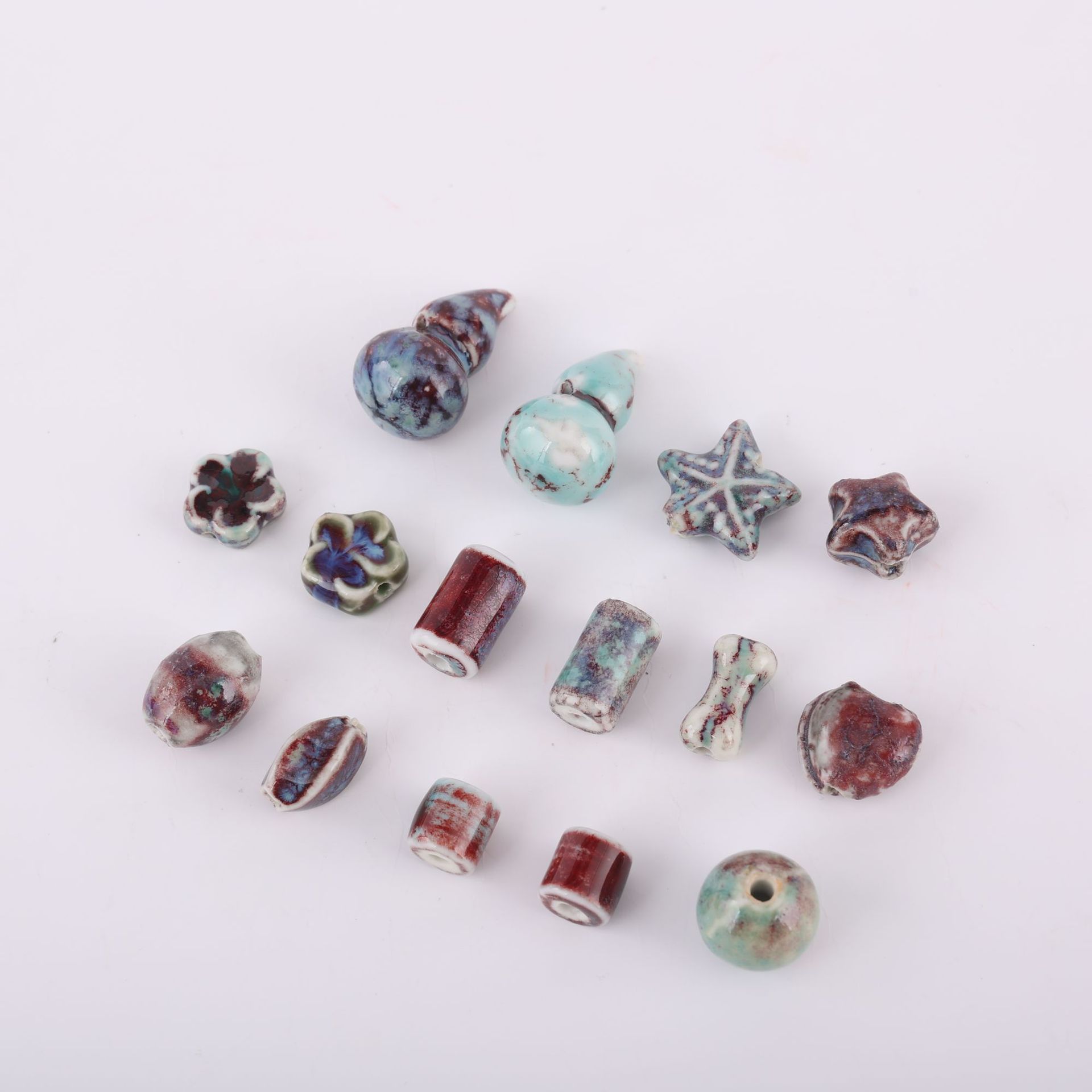 2:Starfish3:Plum blossom slices4:Bone5:14 round beads6:Love7:Stars8:Straight tube9:Cylindrical10:Watermelon beads11:Barrel12:Button type