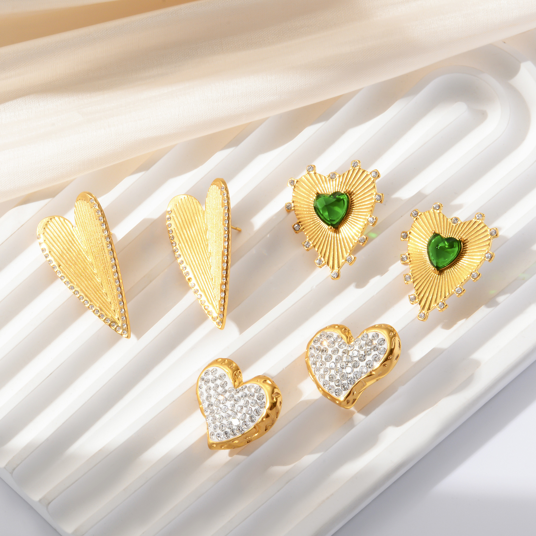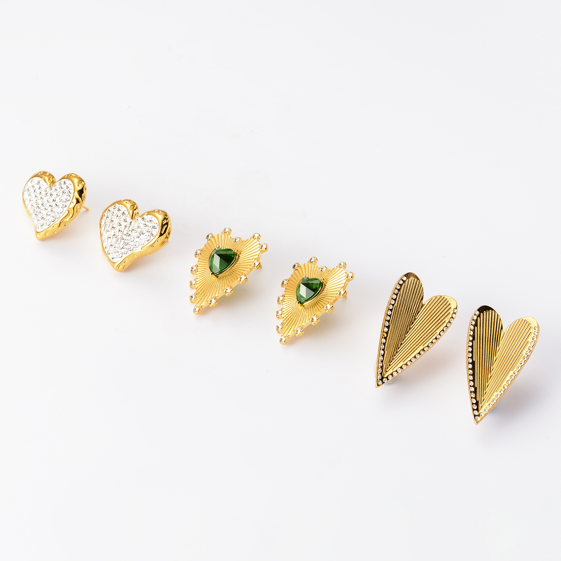 304 Stainless Steel Stud Korvakorut Set, kullan väri kullattu, kolme kappaletta & eri tyylejä valinta & naiselle & emali, Myymät set