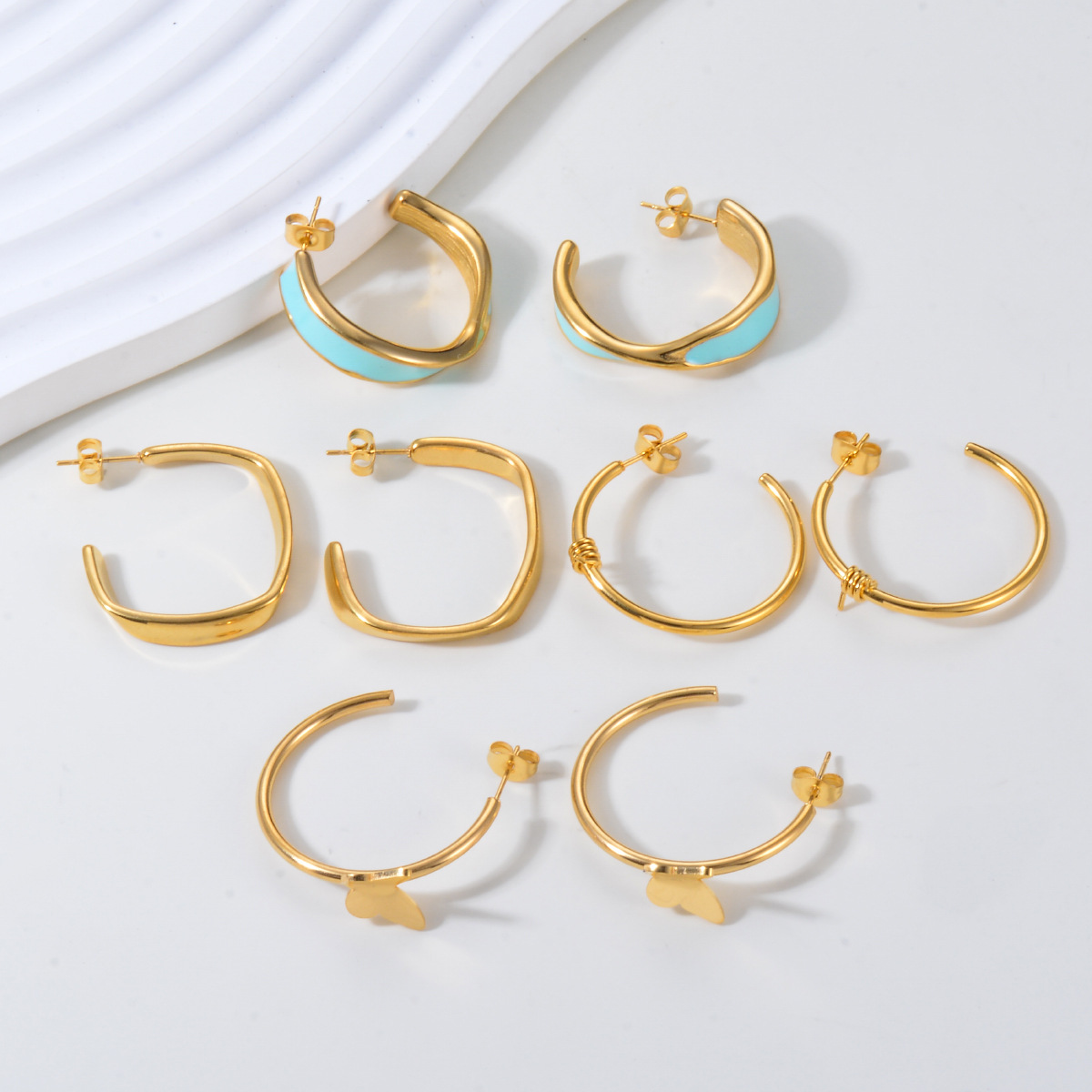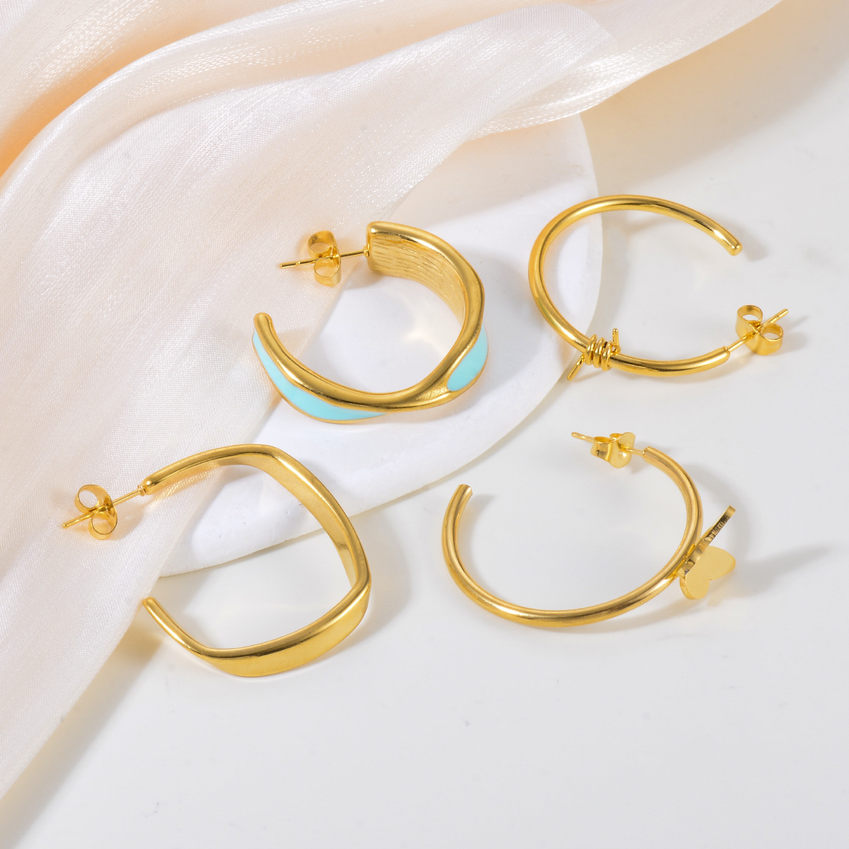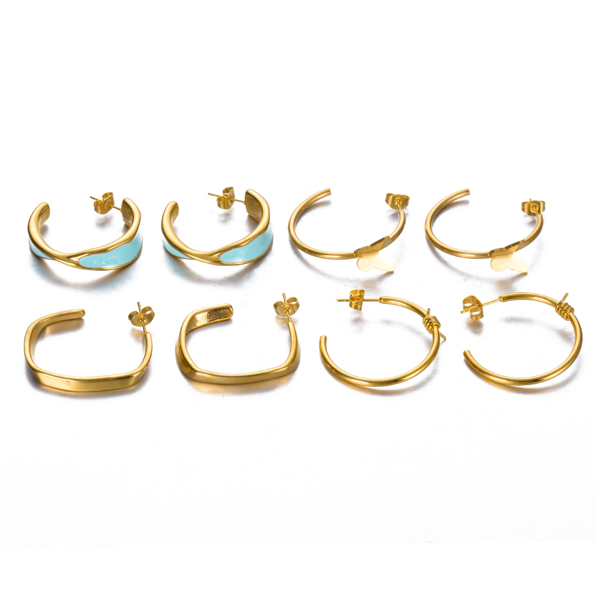 304 Stainless Steel Stud Korvakorut Set, kullan väri kullattu, kolme kappaletta & eri tyylejä valinta & naiselle & emali, Myymät set