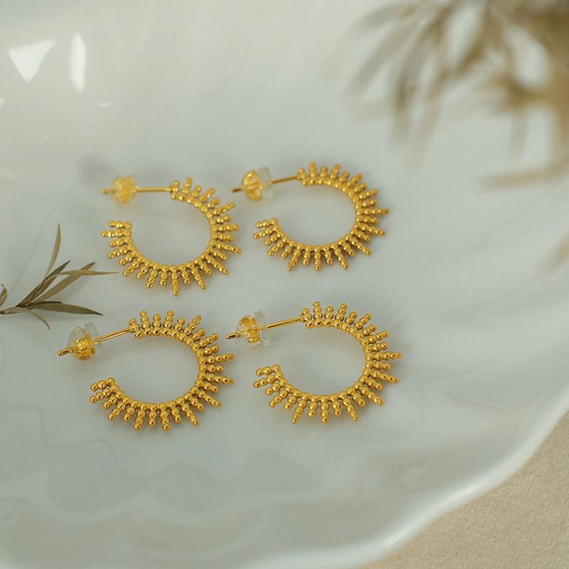 Ruostumaton teräs Korvakorut, 304 Stainless Steel, päällystetty, muoti korut & naiselle, kultainen, 21x22mm, Myymät Pair
