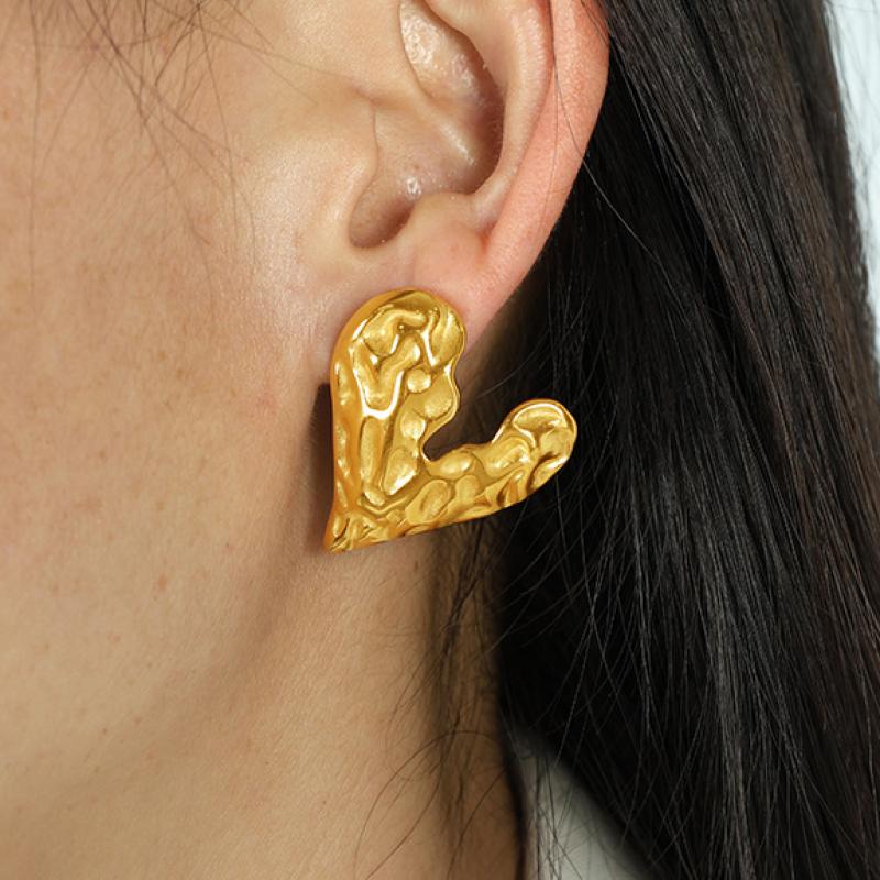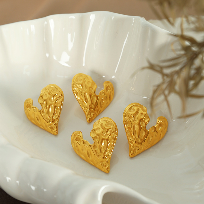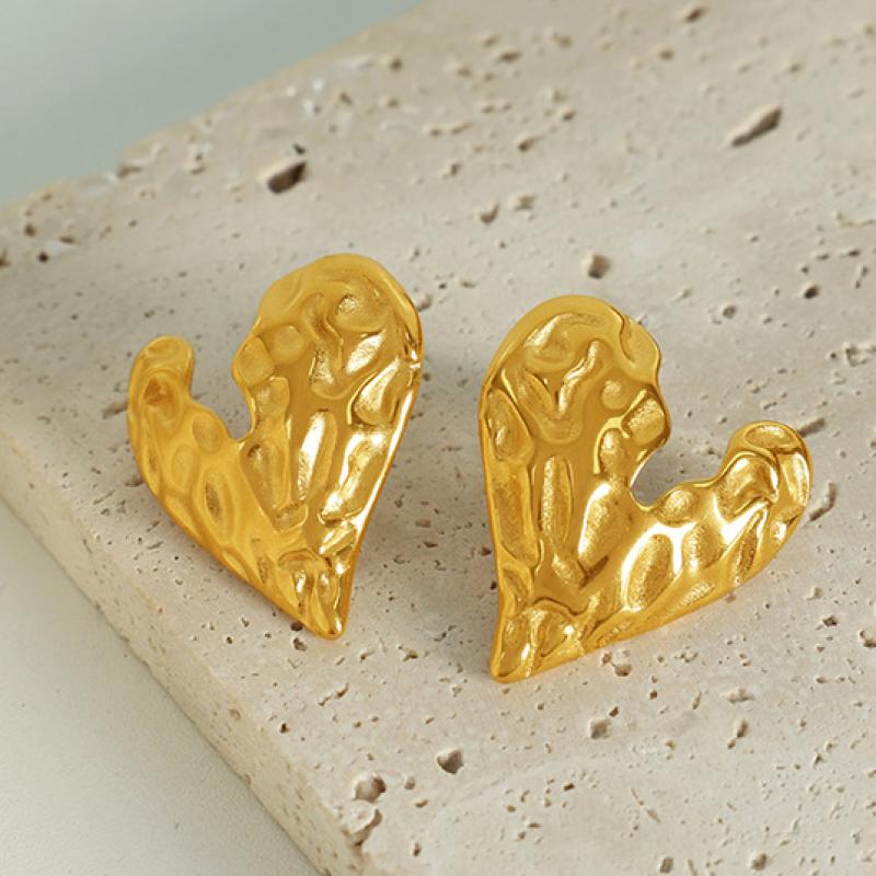 Ruostumaton teräs Korvakorut, 304 Stainless Steel, Sydän, päällystetty, muoti korut & naiselle, kultainen, Myymät Pair