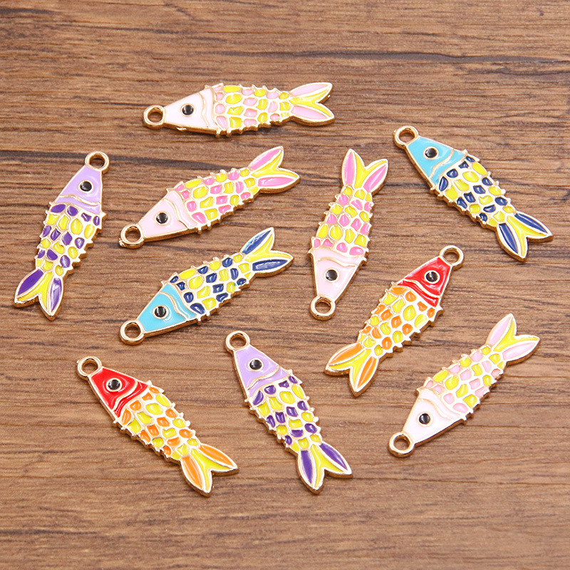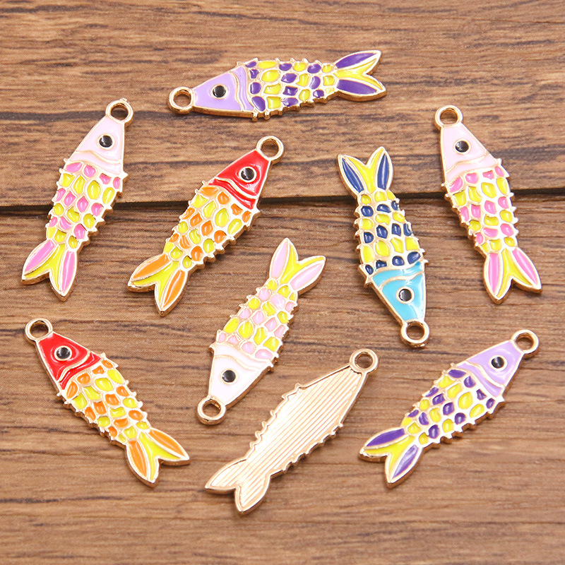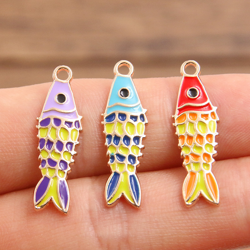 Sinkin seos emali Riipukset, Sinkkiseos, Kala, päällystetty, tee-se-itse, enemmän värejä valinta, 100PC/laukku, Myymät laukku