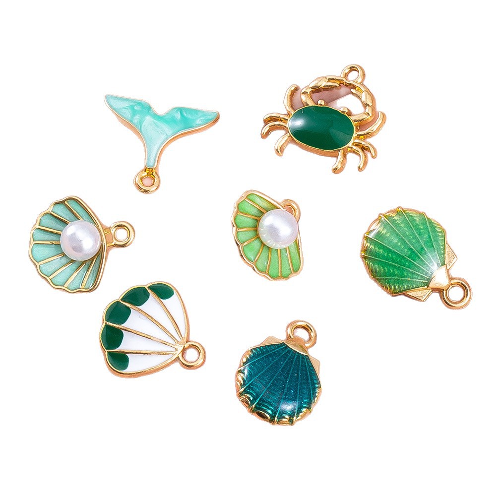 1:Shell pearl - green -15.8x14.42:贝壳珍珠-绿色-15.8x14.43:Shell -16x16.84:Conch -7.7x19.45:Coral -10.6x16.36:Crab -19.6x17.37:Human fish tail -17.5x158:Shell - Dark green -13x18.49:Shell - green -13x18.4