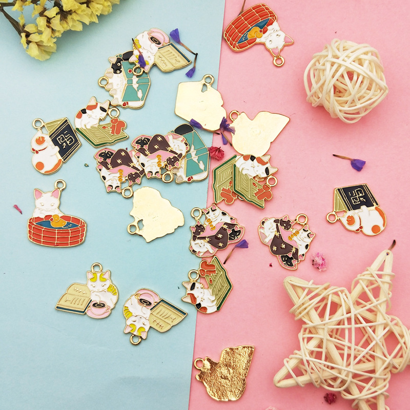 Sinkin seos emali Riipukset, Sinkkiseos, Kissa, kullan väri kullattu, tee-se-itse & eri tyylejä valinta, Myymät PC