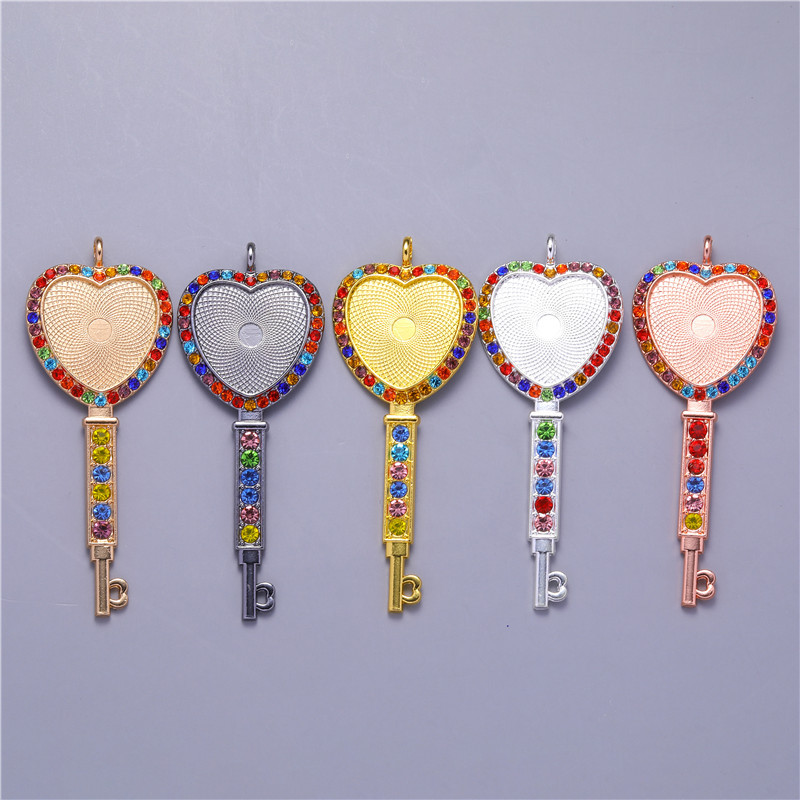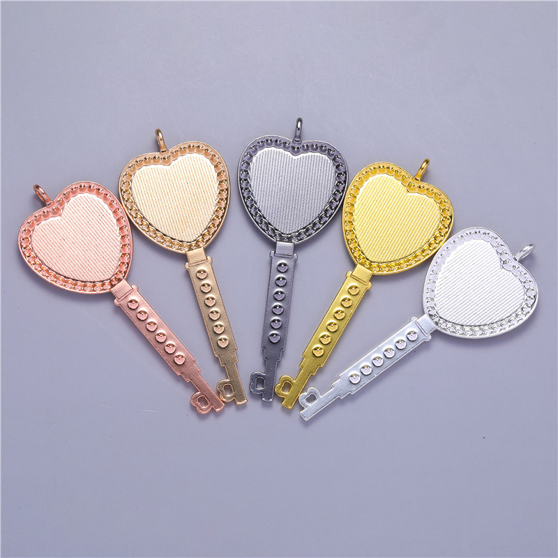 Sinkki metalliseos riipus Cabochon Setting, Sinkkiseos, sydän ja avain, päällystetty, tee-se-itse & tekojalokivi, enemmän värejä valinta, 25mm, Myymät PC