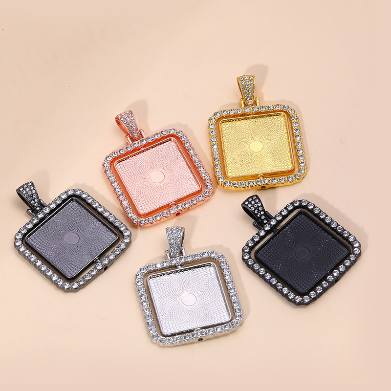 Sinkki metalliseos riipus Cabochon Setting, Sinkkiseos, Neliö, päällystetty, tee-se-itse & tekojalokivi, enemmän värejä valinta, Myymät PC