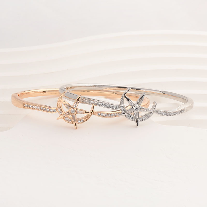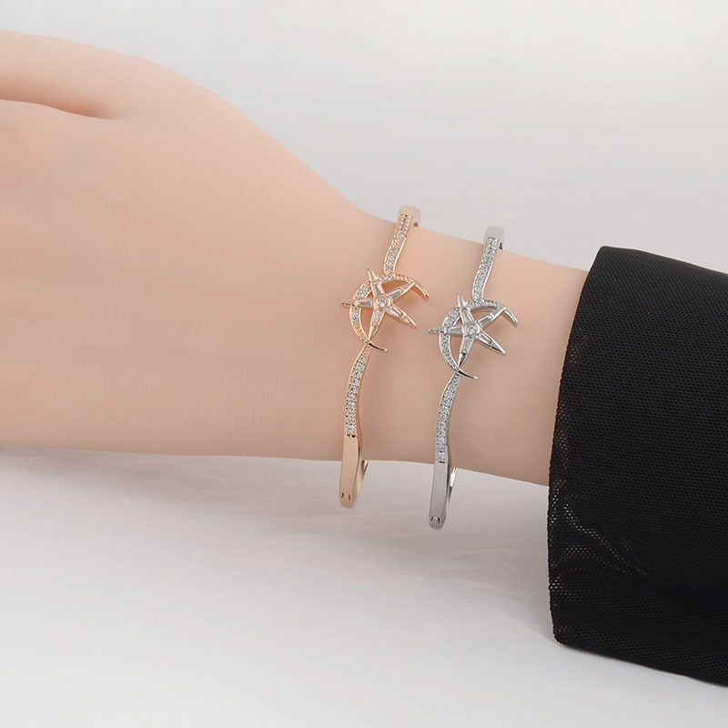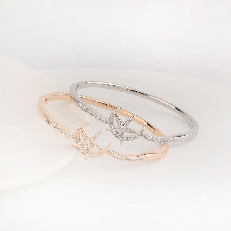 Sinkkiseos Rannerengas, Moon ja Star, päällystetty, Micro Pave kuutiometriä zirkonia & naiselle, enemmän värejä valinta, Sisäläpimitta:N. 63x53mm, Myymät PC
