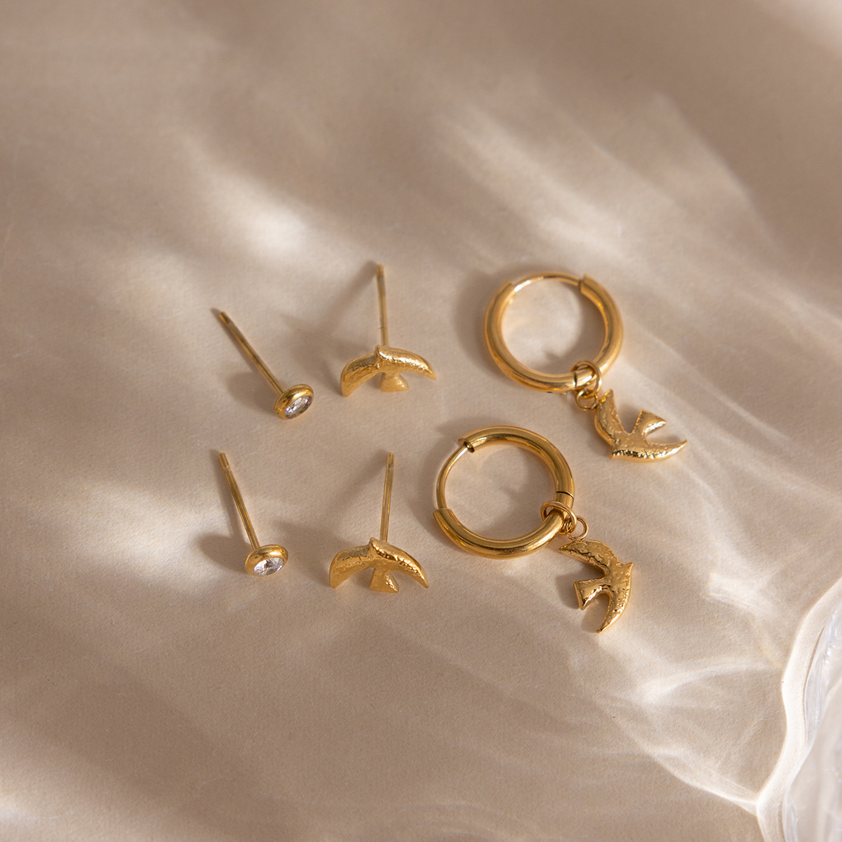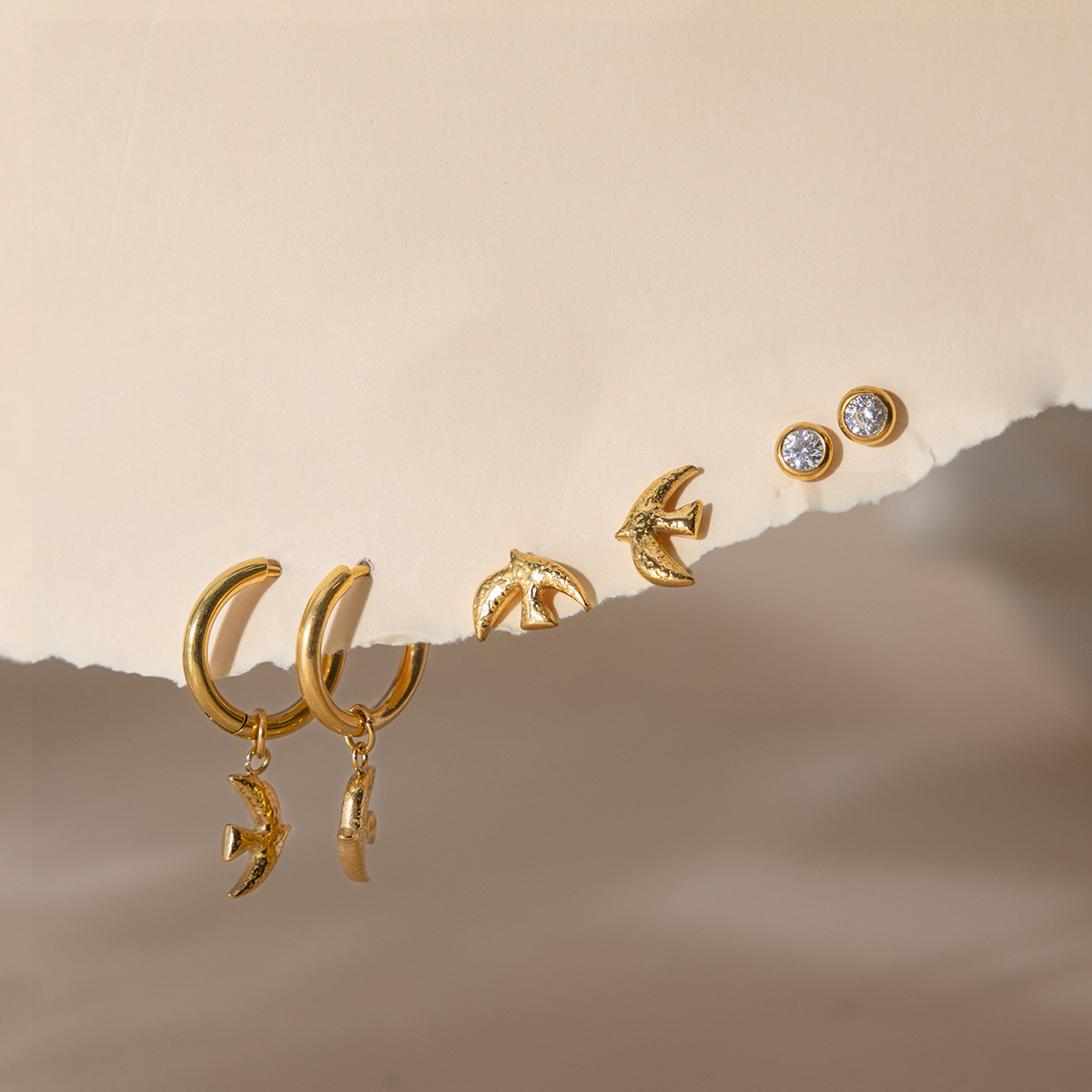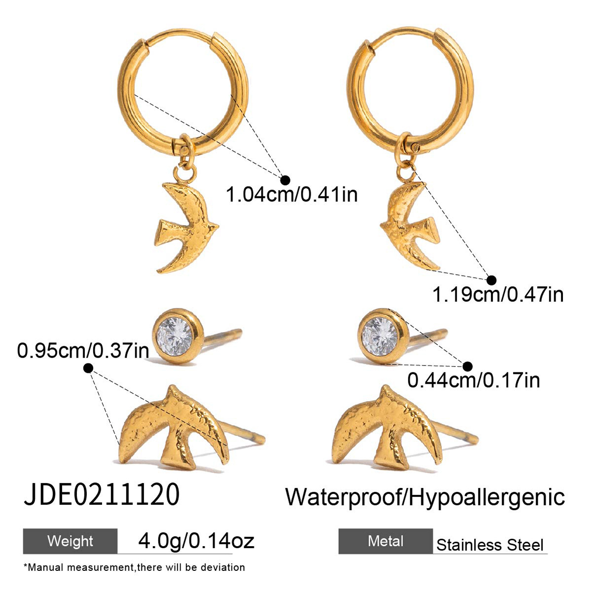 Stainless Steel Drop Korvakorut, Ruostumaton teräs, kullan väri kullattu, naiselle & kuutiometriä zirkonia, 3Parit/set, Myymät set
